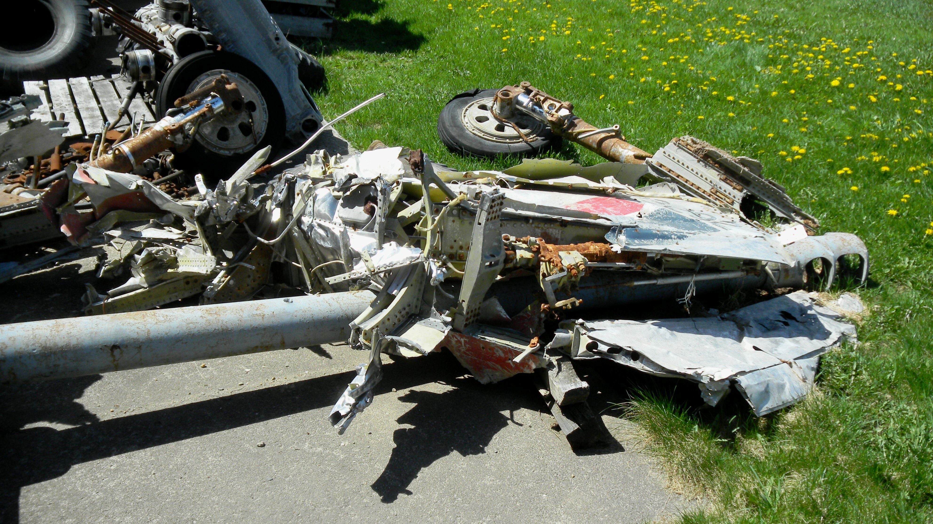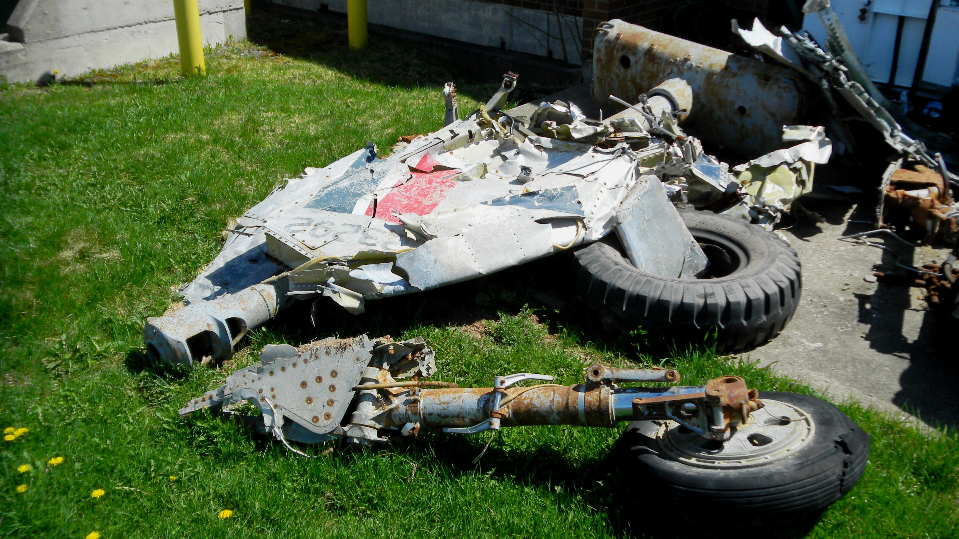 Canadair F-86 Sabre Mk. 5 (F-86E), (Serial No. 23292), wreckage, vertical fin and landing gear.