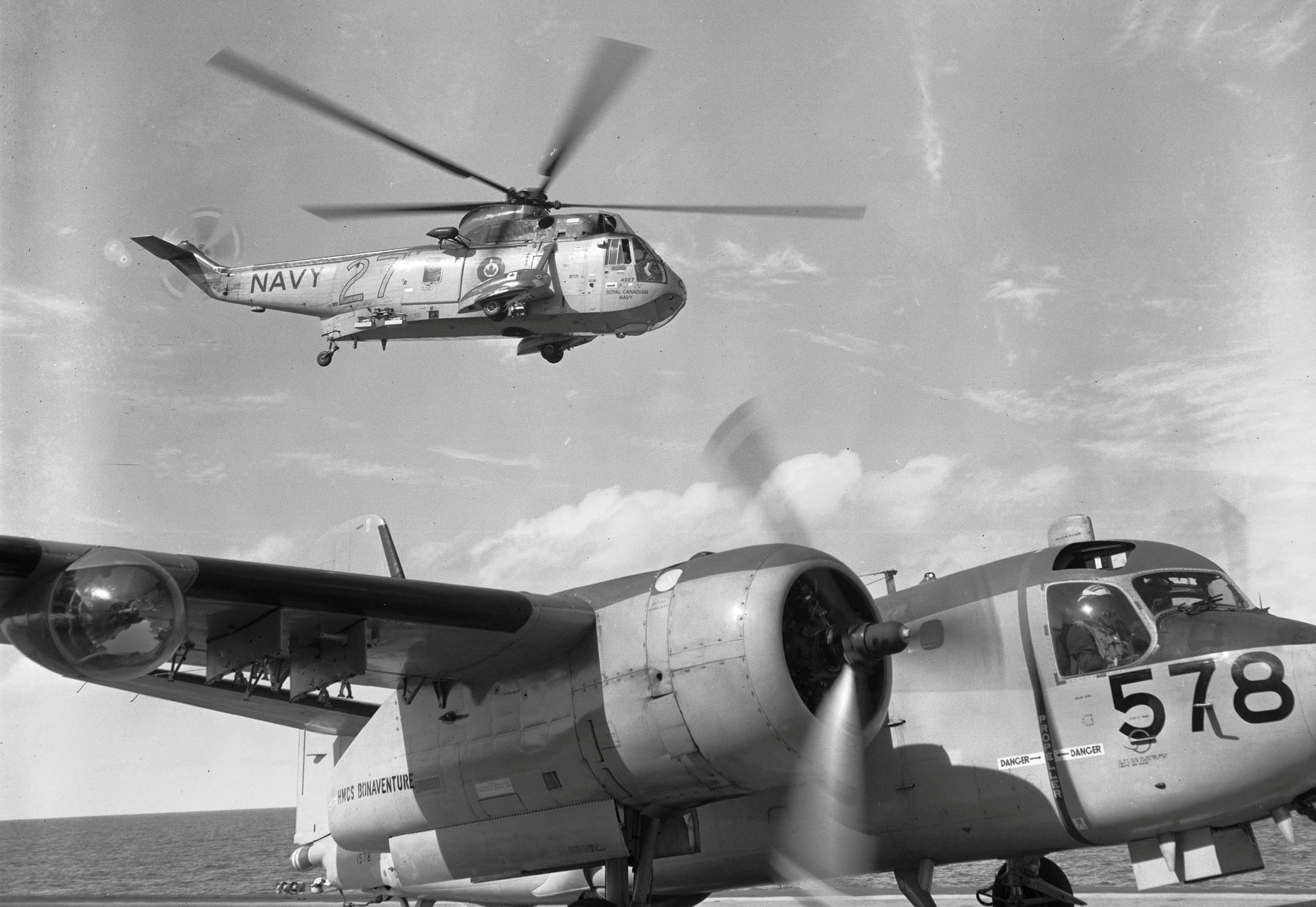 Sikorsky CH-124A Sea King (Serial No. 4027) over RCN de Havilland Tracker (Serial No. 1578), 1968.