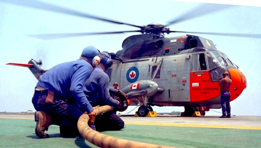 In the 1960s, the RCN developed a technique for landing the huge helicopters on small ship decks, using a ‘hauldown’ winch (called a “Beartrap”), earning aircrews the nickname of “Crazy Canucks”. The Beartrap allows recovery of the Sea King in virtually any sea state. In 1968, the RCN, Royal Canadian Air Force (RCAF) and Canadian Army unified to form the Canadian Forces; air units were dispersed throughout the new force structure until Air Command (AIRCOM) was created in 1975. (Wikipedia)