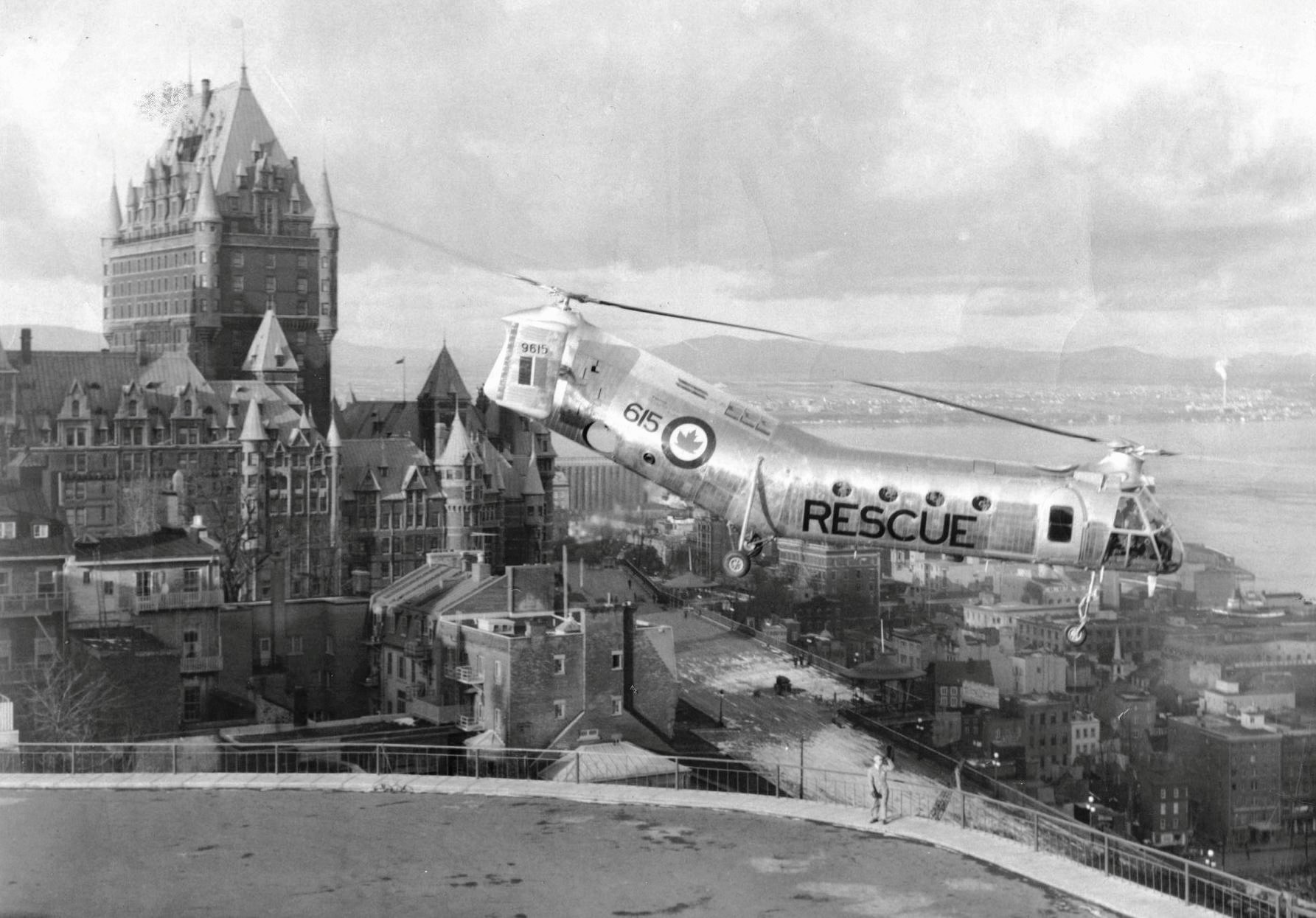 Vertol Canada CH-125 Workhorse (Serial No. 9615), RCAF, over Chateau Frontenac,  Quebec City, 10 Dec 1954.