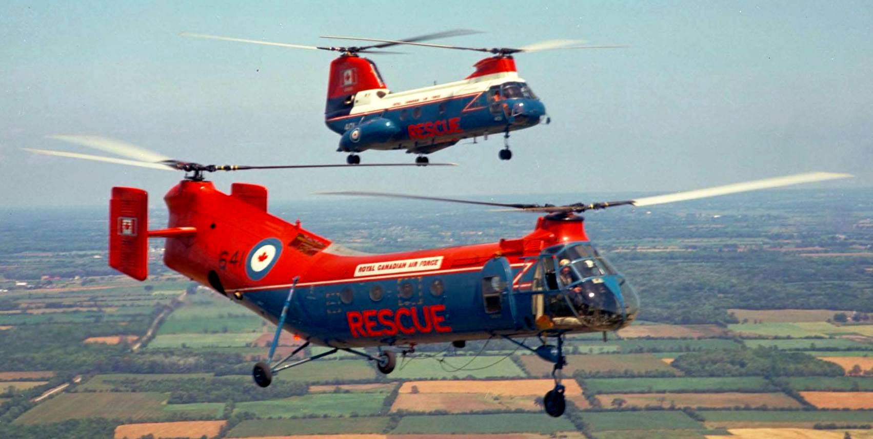 Vertol Canada CH-125 Workhorse (Serial No. 9641) and Boeing Vertol CH-113 Voyageur (Serial No. 10401) (later 11301), 1967.