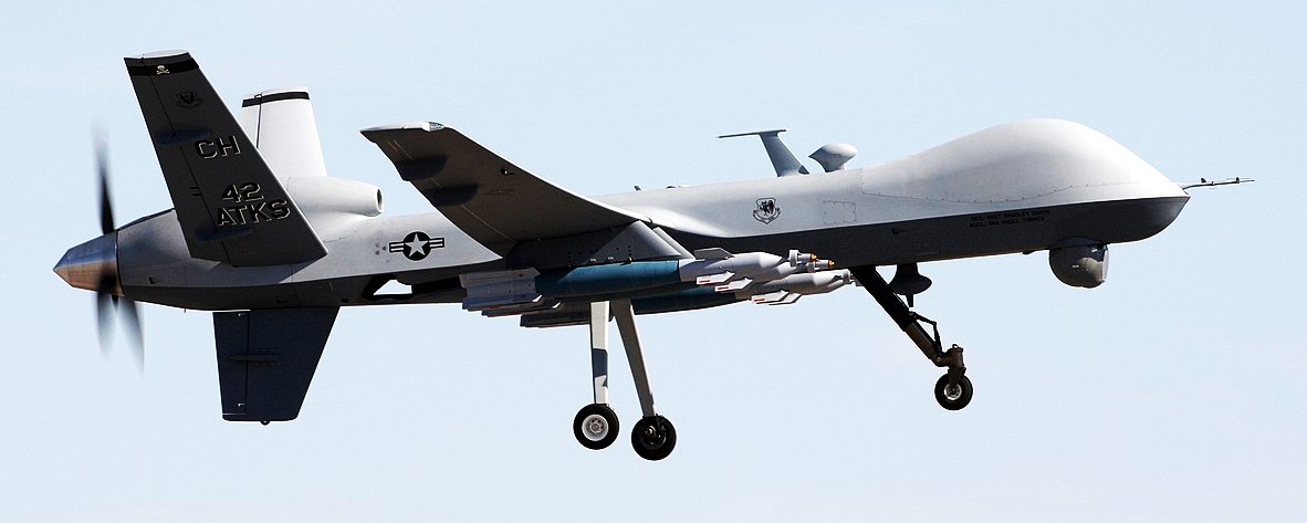 MQ-9 Reaper over Afghanistan with four Hellfire missiles and two 500lb bombs, 2007.