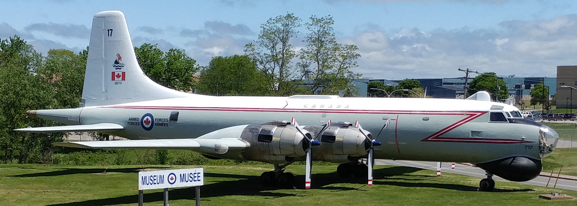 Canadair CP-107 Argus Mk. 1 (Serial No. 10717), entered service at RCAF Station Greenwood in 1958 and was struck off strength in 1980 as a permanent monument at the air park.