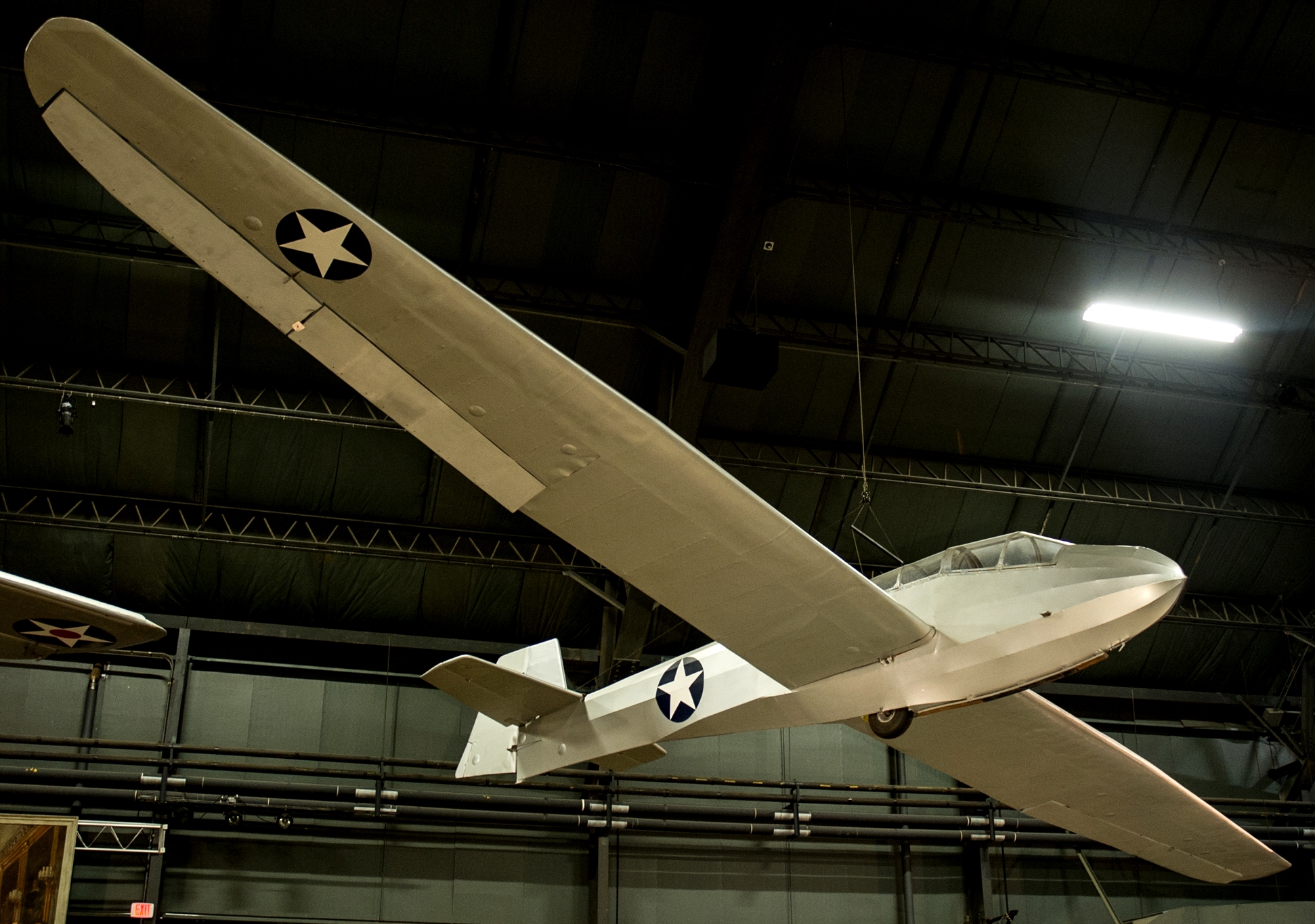 Schweizer TG-3A Glider (Serial No. 42-52988). The TG-3A on display in the NMUSAF was donated by Henry A. Shevchuk. It was restored by the Spartan School of Aeronautics, Tulsa, Oklahoma, and delivered to the museum in December 1980.