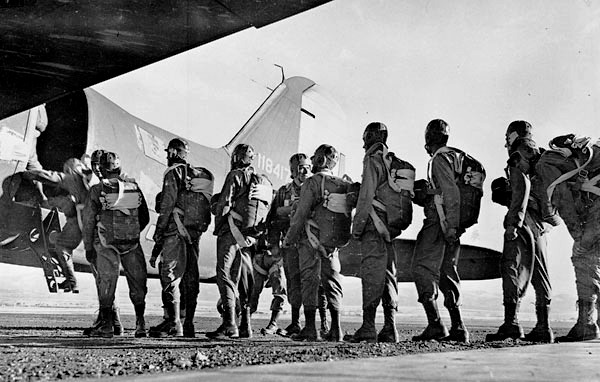 First Special Service Force paratroopers boarding a Douglas C-47 Skytrain for a jump at Fort William Henry Harrison, Montana, in 1942.