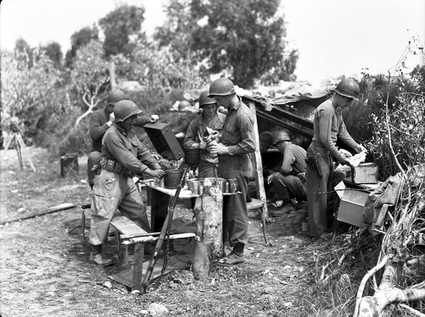 First Special Service Force, preparing a meal, Anzio, ca 20 April 1944.