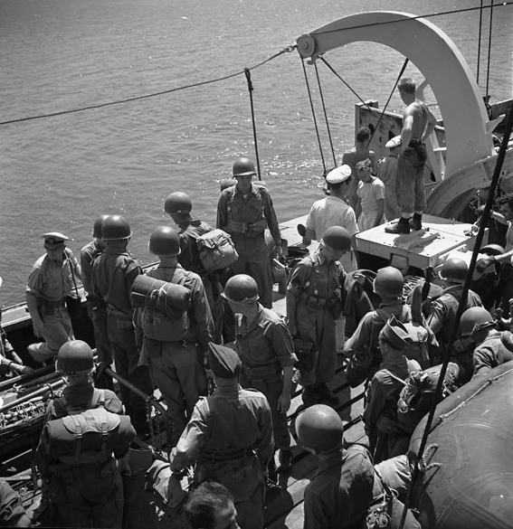 First Special Service Force preparing to take part in the assault on the French islands of Port Cros and Levant which preceded the invasion of Southern France by a few hours, August 1944.