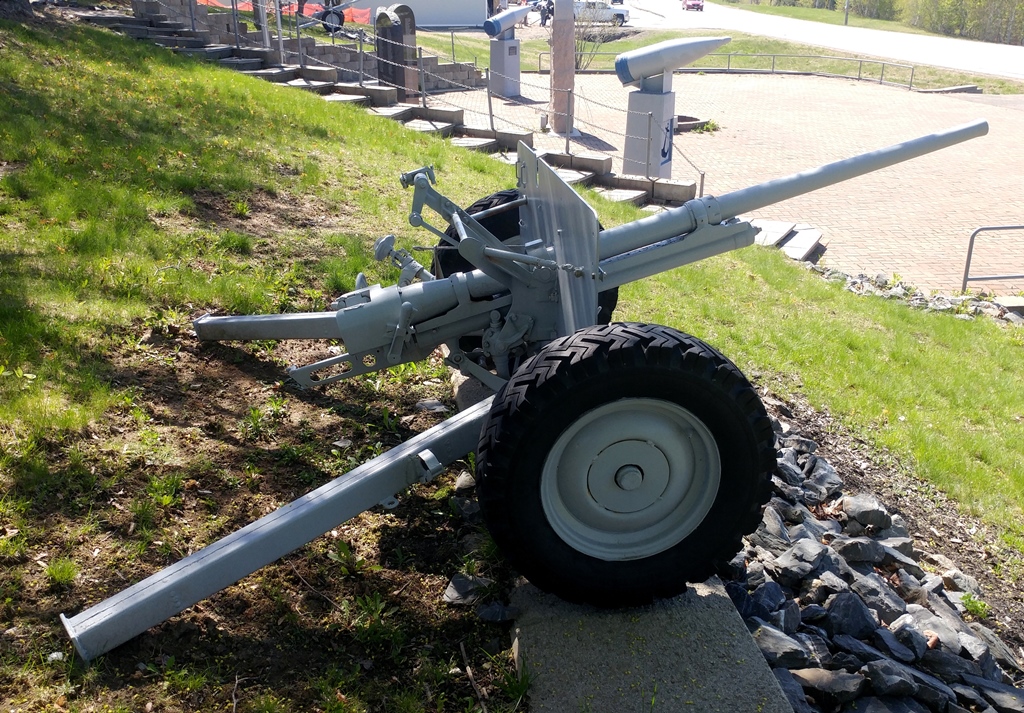 M1A1 75-mm pack howitzer, on display in the Royal Regiment of Canadian Artillery School, 5 Canadian Division Support Base Gagetown, New Brunswick.