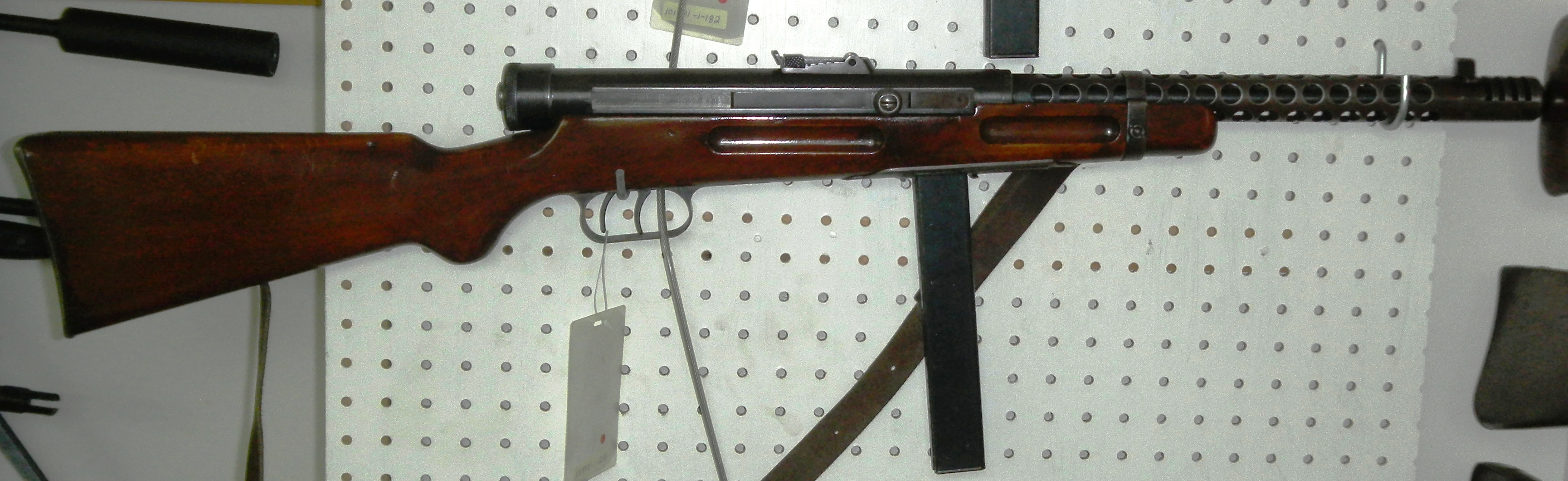 MAB 38 (Moschetto Automatico Beretta Modello 1938), Modello 38, or Model 38 and its variants were a series of 9-mm official submachine guns of the Royal Italian Army introduced in 1938 and used during the Second World War.  The guns were also used by the German, Romanian, and Argentine armies of the time.  This one is on display in the New Brunswick Military History Museum (Woolastook), New Maryland, New Brunswick.