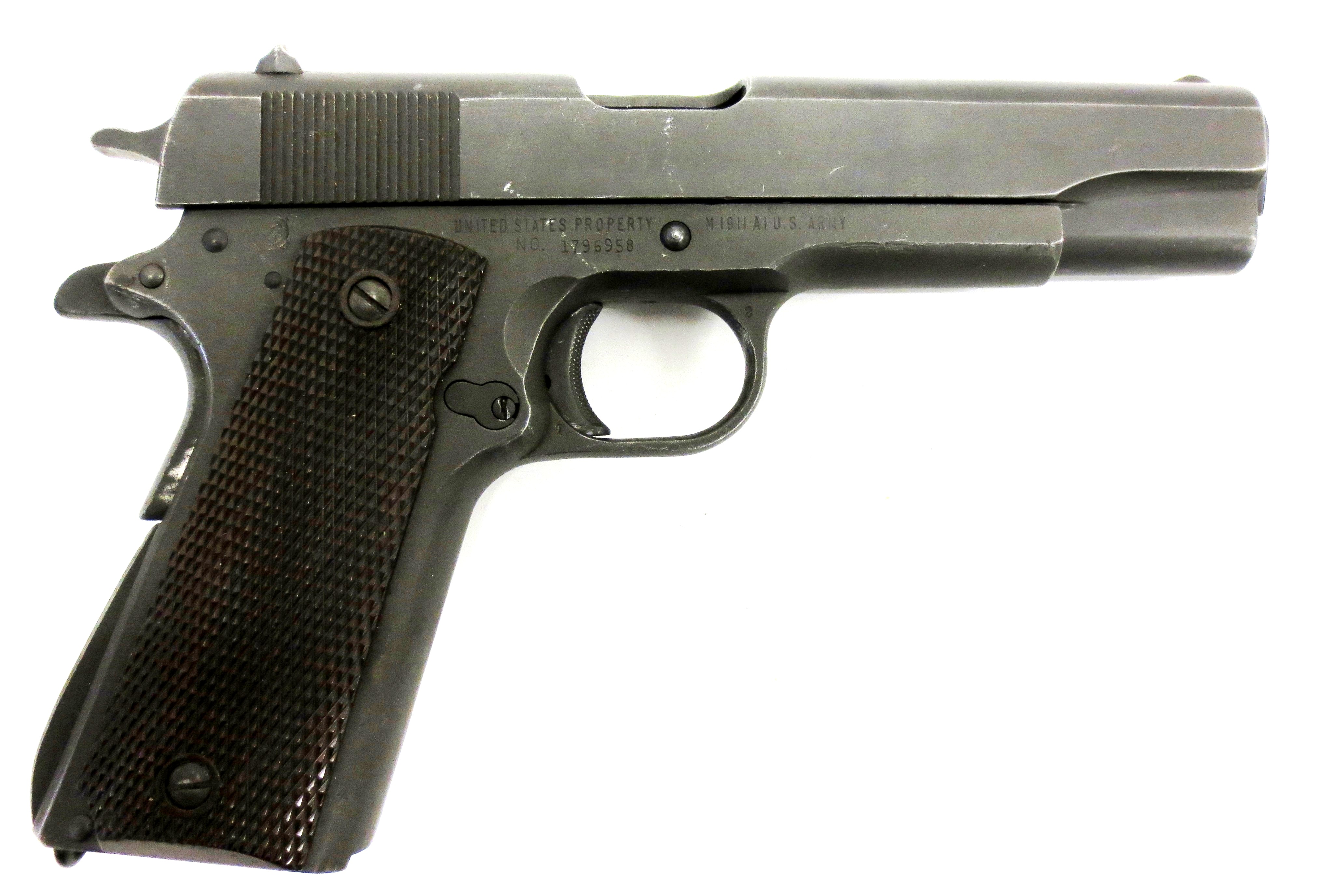 .45 calibre Automatic Colt Pistol (ACP) M1911, on display in the New Brunswick Military History Museum, 5 Canadian Division Support Base Gagetown, New Brunswick.