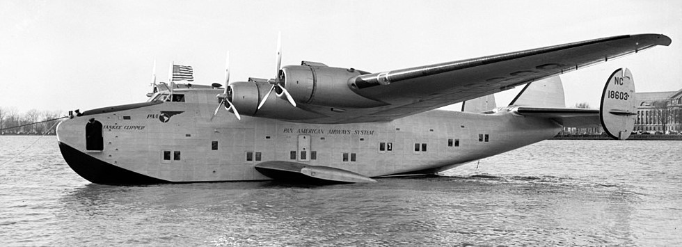 The Pan American World Airways Boeing 314 Yankee Clipper (serial NC18603), circa 1939. This aircraft started the Transatlantic mail service. It crashed in Lisbon, Portugal, on 22 February 1943 and was written off.