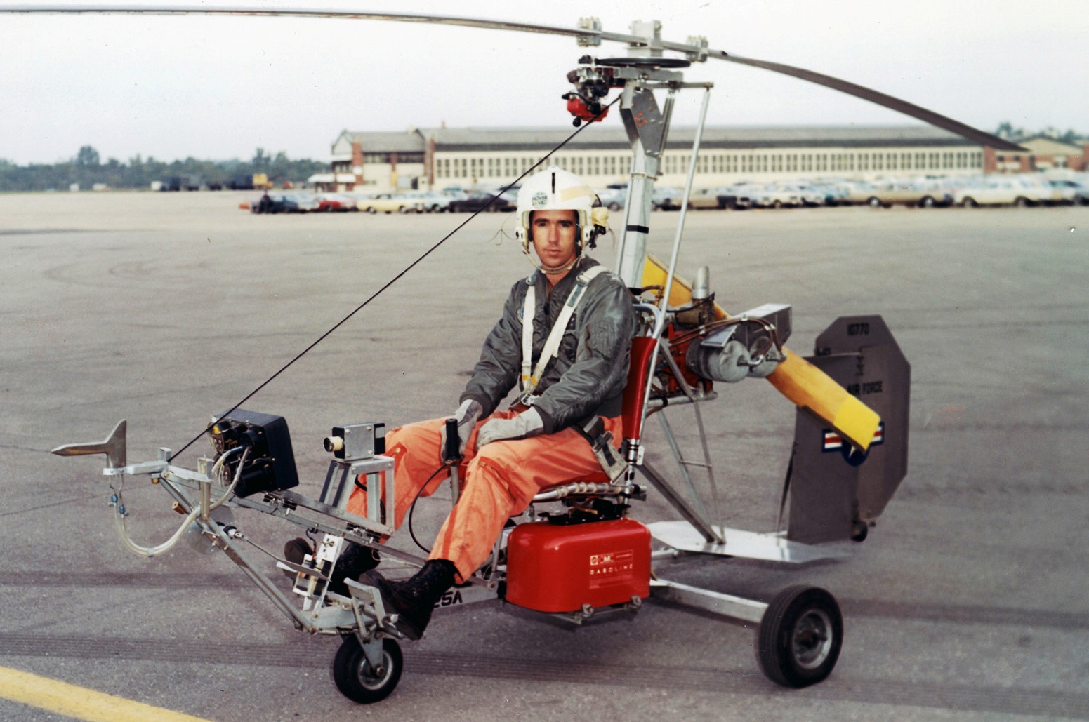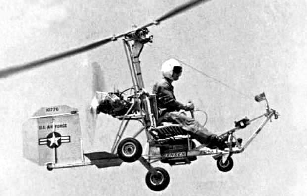 Bensen X-25A Gyrocopter (Serial No. 68-10770). In early 1968, the U.S. Air Force ordered three X-25 type aircraft to test methods of improving the odds of a downed flyer’s escape. At the time, the USAF was suffering heavy losses in the Rolling Thunder air campaign over North Vietnam. The unpowered Bensen X-25 Discretionary Descent Vehicle (also called a “Gyroglider”) theoretically could be stowed in an aircraft, ejected with the pilot and deployed during descent. Its rotary wings would be brought up to speed as it fell, and the pilot would fly it as an autogyro to a safer landing area. The X-25A Gyrocopter on display in the NMUSAF represented a more advanced concept with a limited “fly-away” capability. Though similar to the X-25, the X-25A had a more robust structure, and it was powered by a small engine. The two-seat X-25B was originally used as an unpowered, towed trainer, but it was later fitted with an engine. Tests proved that pilots could be quickly and easily trained to fly the X-25. Even so, with the air war in Vietnam winding down, and doubts about its operational feasibility, the X-25 program ended. The X-25A was delivered to the museum in 1969.