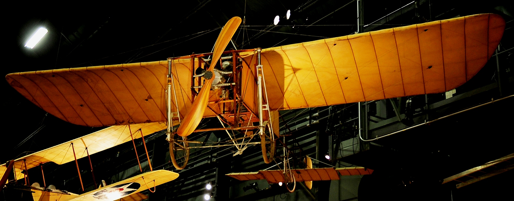 Blériot, 1909. Mr. Ernest C. Hall of Warren, Ohio, built the Bleriot on display in 1911 from factory drawings. With it, he taught himself to fly. Mr. Hall donated the aircraft to the museum in 1969.
