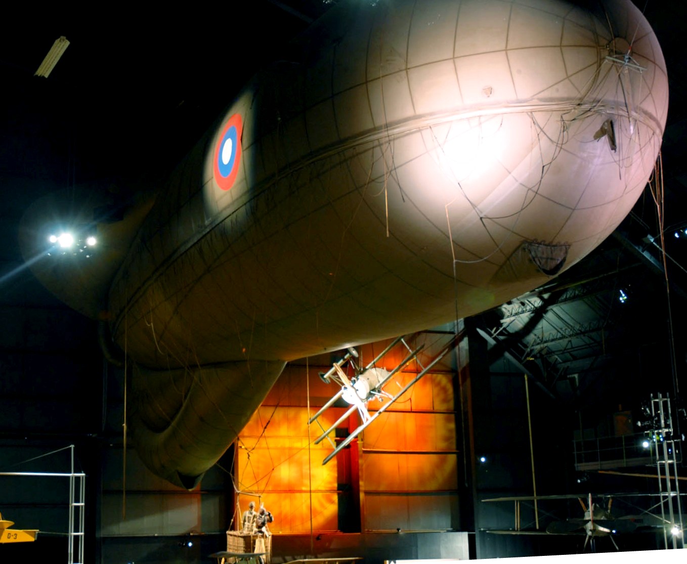 Caquot Type R Observation Balloon. Caquot balloons were manufactured in great numbers during the First World War; nearly 1,000 were made in the United States in 1918-1919. During the Second World War, the British produced Caquots once again, but in limited numbers. The balloon displayed at the museum was manufactured in 1944 in England, and is believed to be the only survivor. The British used it for parachute testing and noncombat aerial observation and photography until 1960. The British Ministry of Defense, Royal Aircraft Establishment, presented the Caquot to the museum after it was located with the aid of American and British First World War balloon veterans in 1975. Assisted by the Goodyear Aerospace Corp. of Akron, Ohio, which had produced these balloons during the First World War, NMUSAF personnel mended and sealed the balloon fabric and prepared it for inflation. It was placed on display in May 1979.