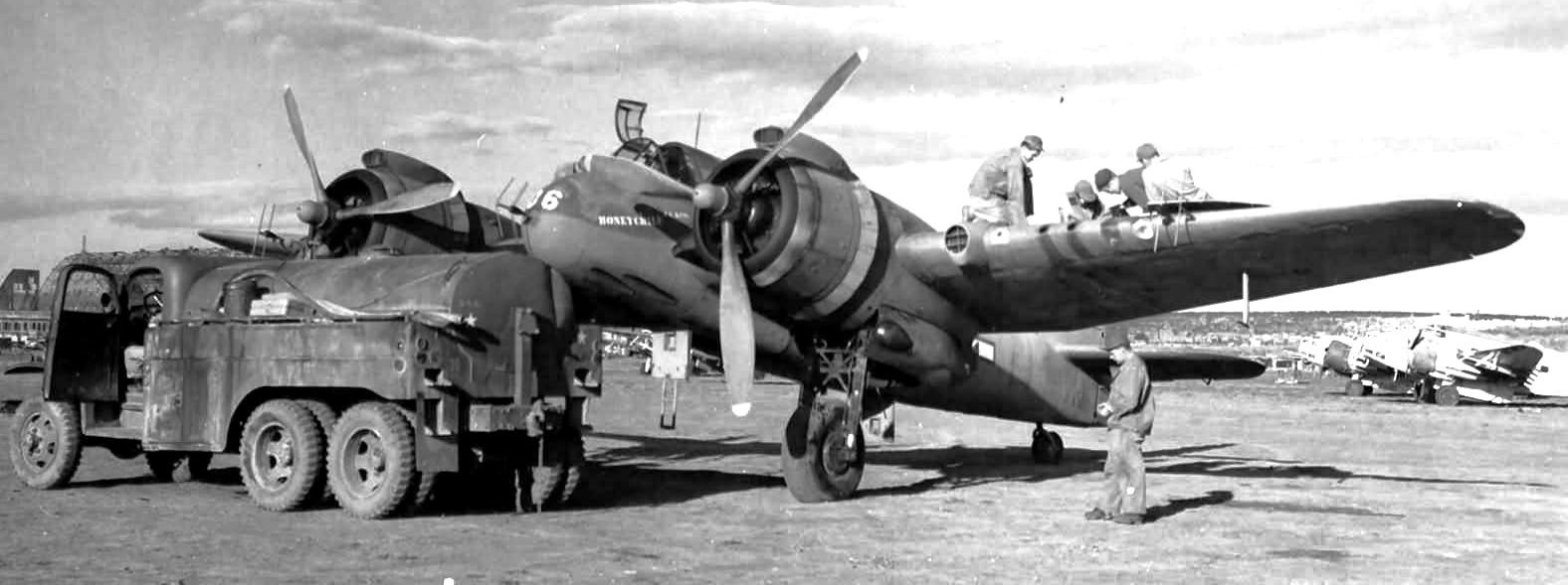 Bristol Beaufighter “Honeychile” in service with the USAAF, 414th Night Fighter Squadron, at Grottaglie Airfield, Italy, Nov 1943.