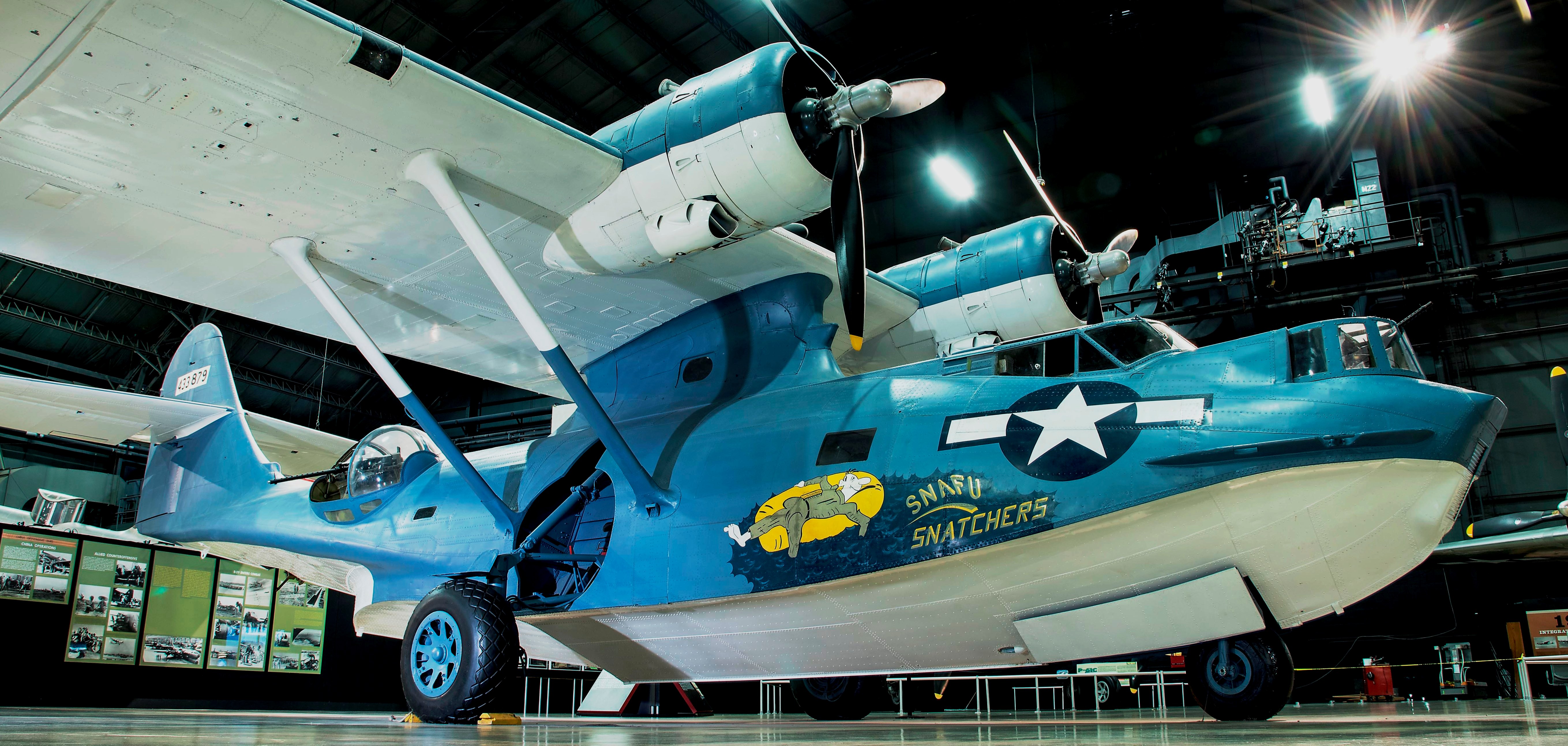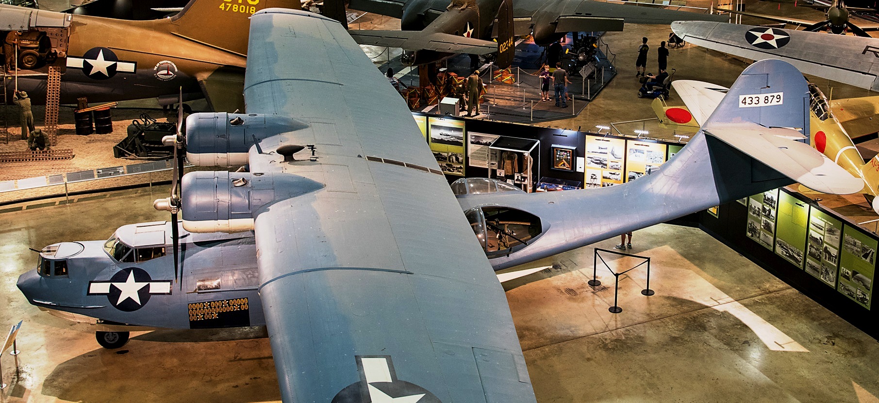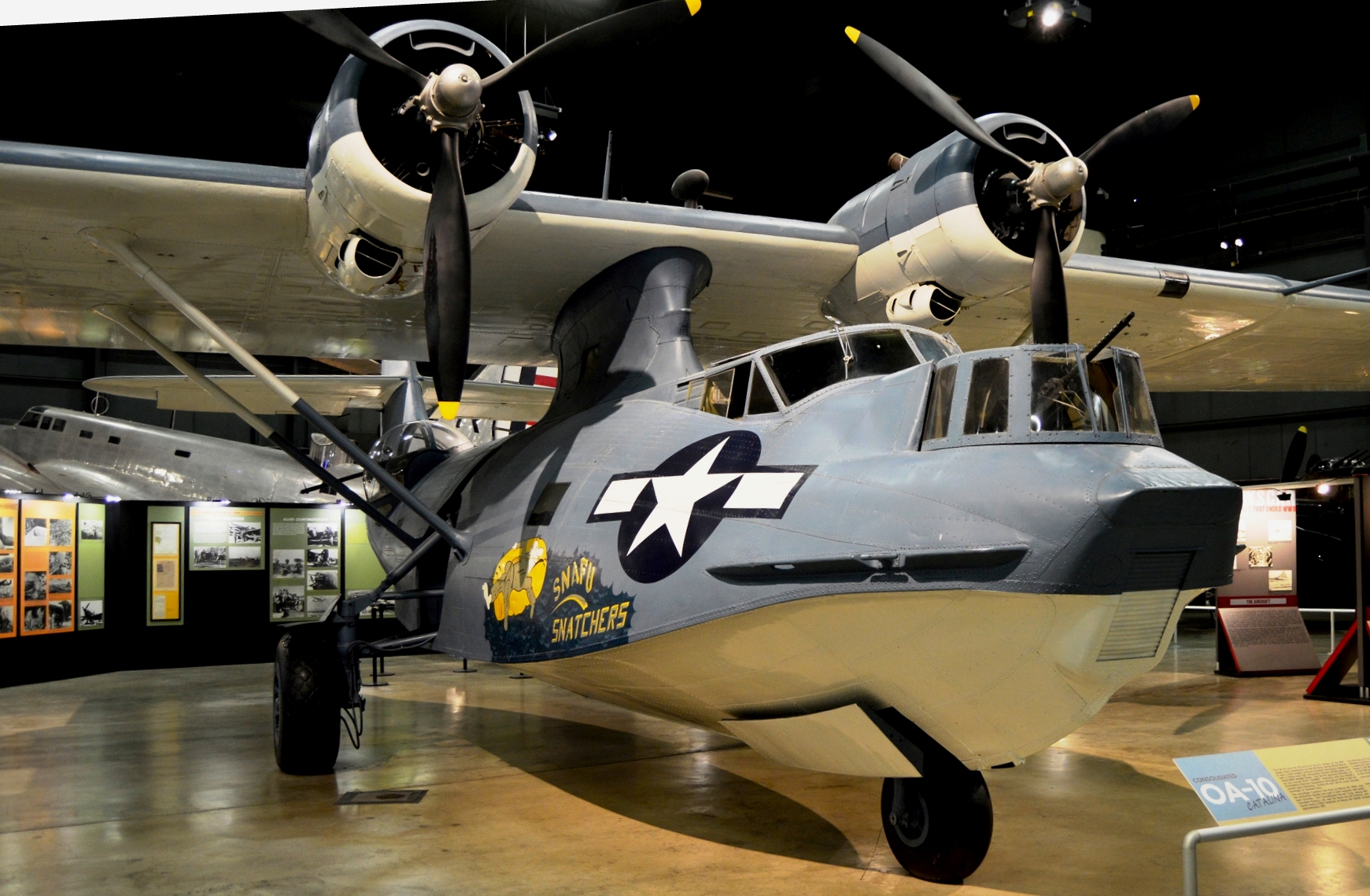 Consolidated PBY-5 Catalina (Serial No. 44-6595), (BuNo. 46595), painted as OV-10 (Serial No. 44-33879), C/N 1959. The Brazilian Air Force was one of several Allied nations that received Catalinas during the Second World War. It operated this Catalina in a variety of roles in the Amazon Basin until 1981. It was flown to the museum in 1984, and was restored and painted as an OA-10A assigned to the 2nd Emergency Rescue Squadron in the Pacific Theater during the Second World War.