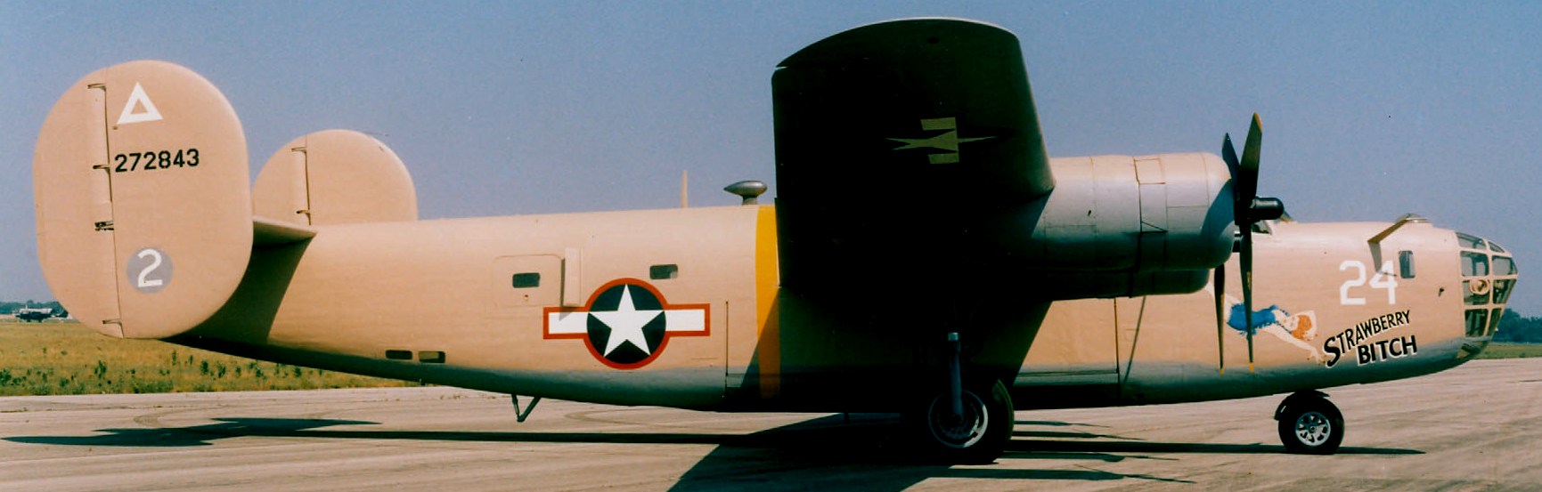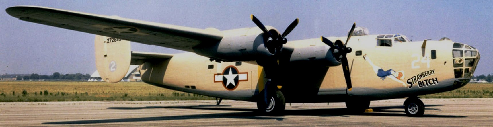 Consolidated B-24D Liberator (Serial No. 42-72843), 24, C/N 2413, “Strawberry Bitch“. The B-24D on display in the NMUSAF flew combat missions from North Africa in 1943-1944 with the 512th Bomb Squadron. It was flown to the museum in May 1959. It is the same type airplane as the “Lady Be Good“, the world-famous B-24D that disappeared on a mission from North Africa in April 1943 and was found in the Libyan Desert in May 1959.