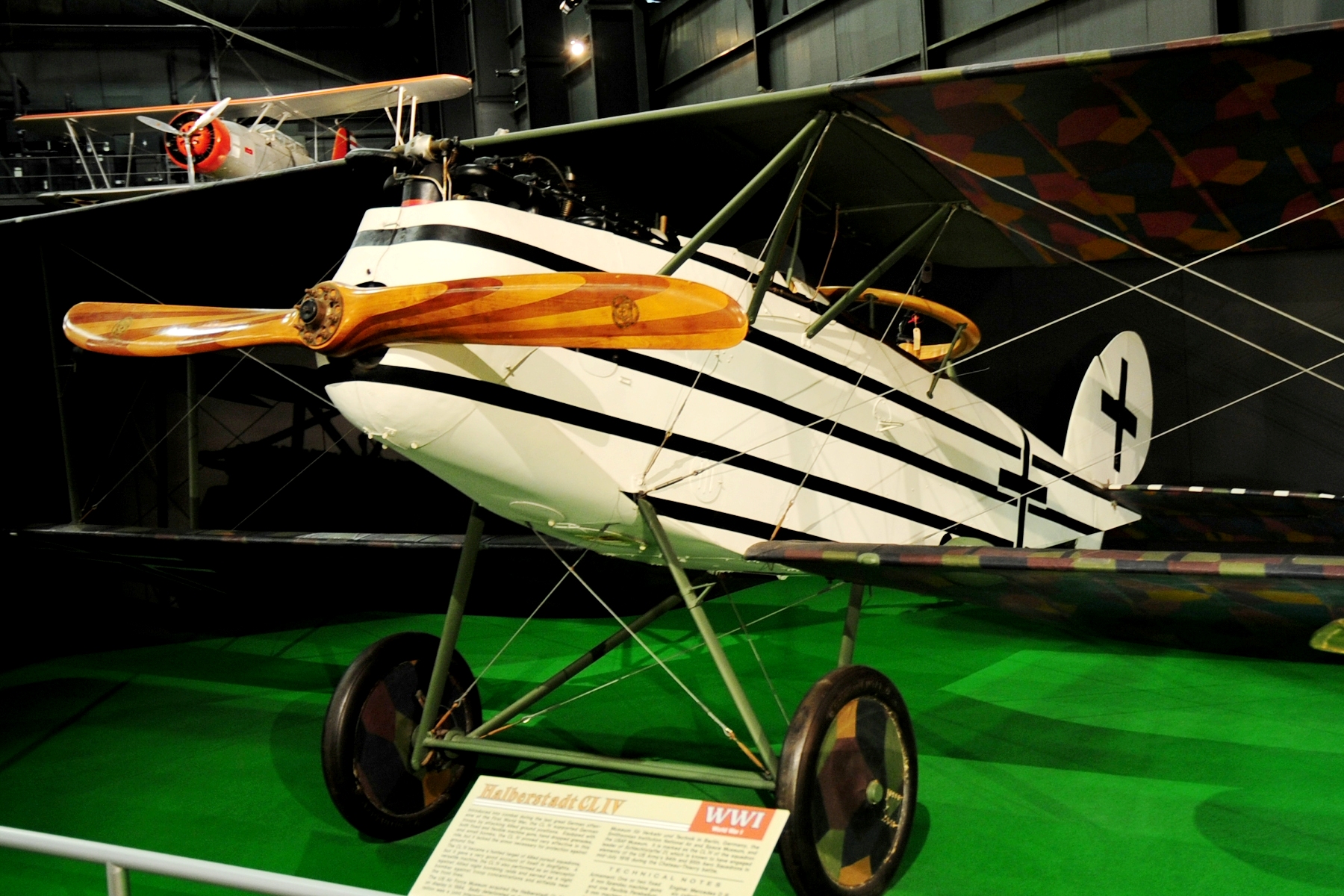 Halberstadt CL IV.  The museum acquired the Halberstadt CL IV on display in 1984. Badly deteriorated at the time, its restoration was a joint international cooperative venture by the Museum fur Verkehr und Technik in Berlin, Germany, the Smithsonian Institution’s National Air and Space Museum and the National Museum of the United States Air Force.  It is marked as the CL IV of the squadron leader of the Schlachtstaffel 21, which is known to have engaged elements of the U.S. Army’s 94th and 95th Aero Squadrons in mid-July 1918 during the battle of Chateau Thierry.