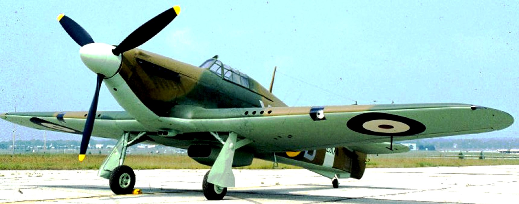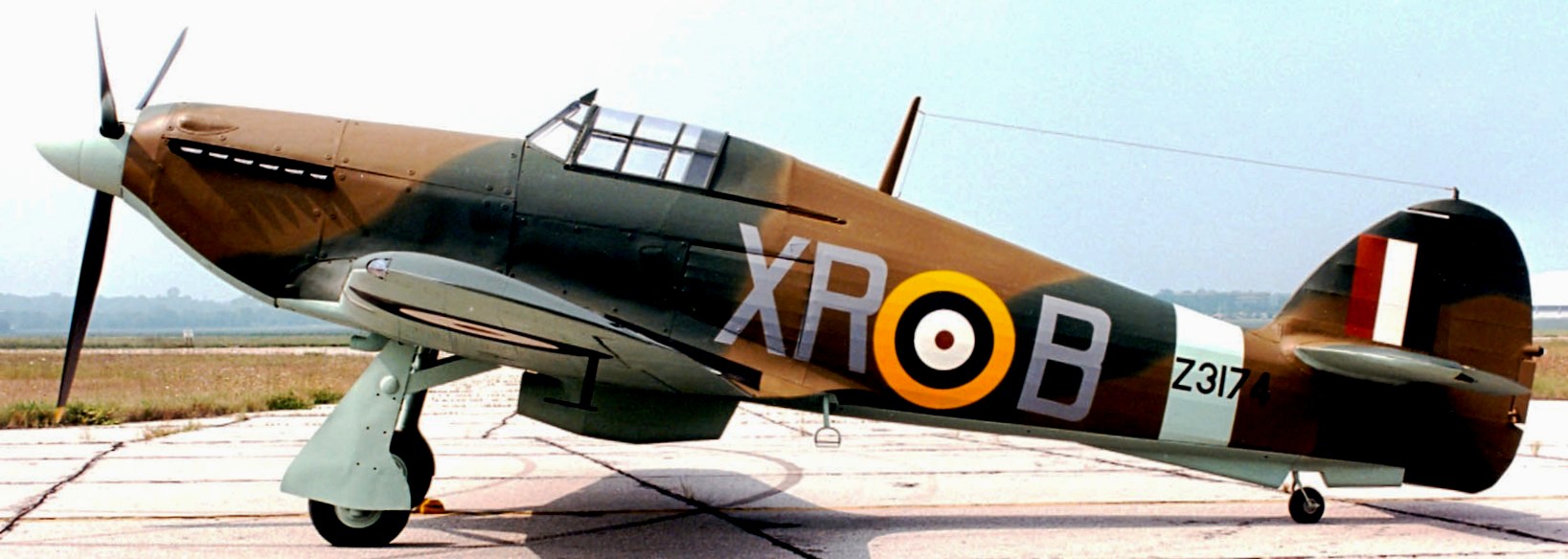 Hawker Hurricane Mk. IIa (Serial No. Z3174), XR-B.  This aircraft was built in Canada.  It is painted to represent an aircraft of RAF No. 71 (Eagle) Squadron, which was composed of American pilots that had volunteered to join the RCAF or the RAF beginning in September 1940 prior to US entry into the Second World War in Dec 1941.