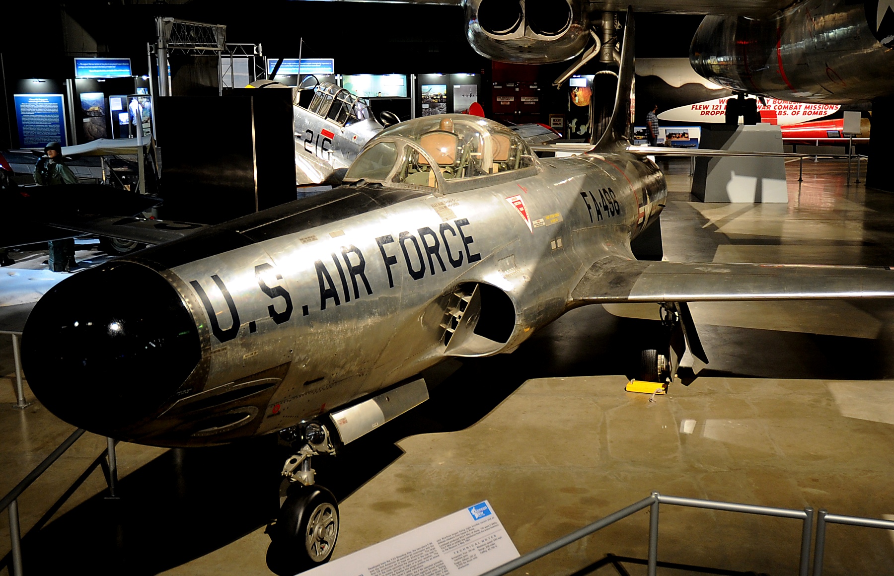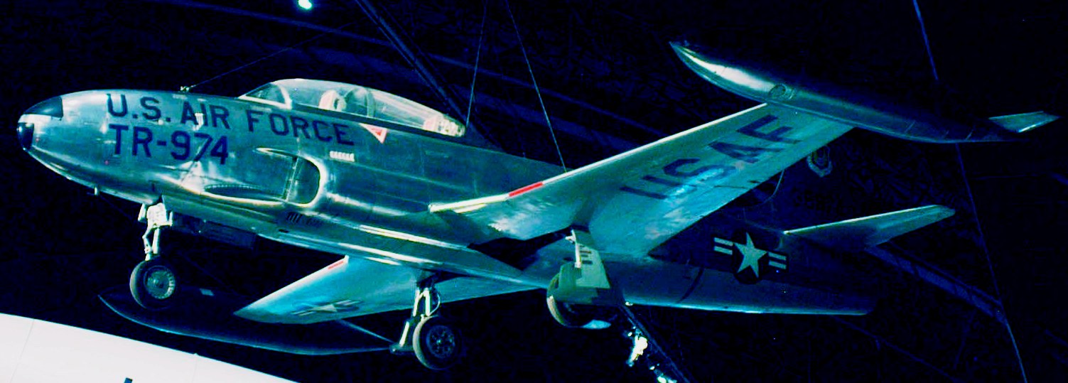 Lockheed T-33A Shooting Star (Serial No. 53-5974), TR-974, C/N 580-9456. Suspended from the ceiling. The T-33 is one of the world’s best-known aircraft, having served with the air forces of more than 20 different nations over several decades. The T-33A on display in the NMUSAF was flown to the museum in 1962.