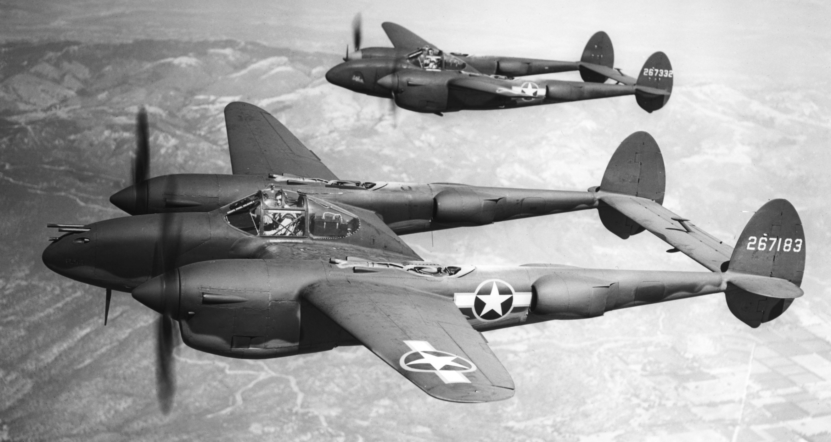 Lockheed P-38J Lightnings (Serial Nos. 42-67183 and 42-67332), ca 1944.