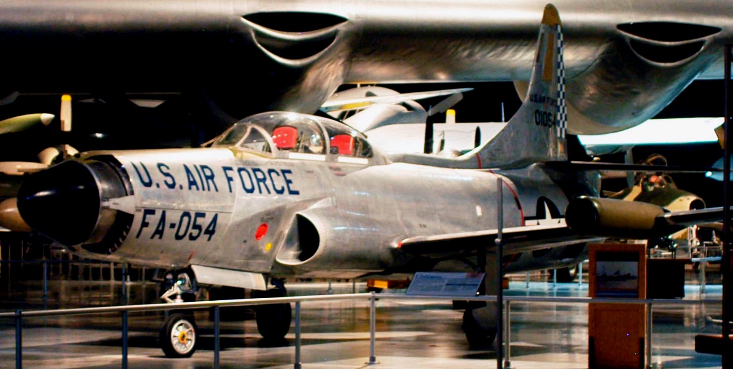 Lockheed F-94C Starfire (Serial No. 50-0980), FA-054, painted as (Serial No. 50-1054), FA-054, C/N 880-8025. The aircraft on display in the NMUSAF has been painted to represent an F-94C assigned to the 60th Fighter Interceptor Squadron at Otis Air Force Base, Massachusettts, during the late 1950s.