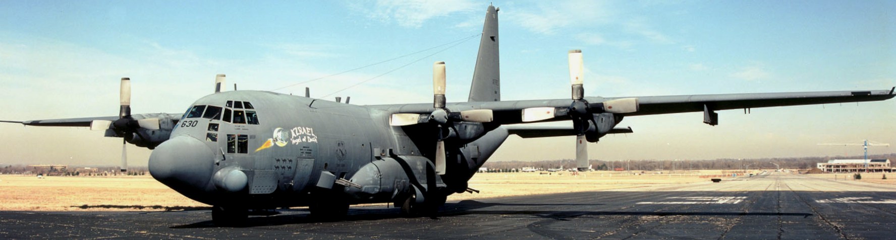 Lockheed AC-130A Spectre (Serial No. 54-1630), C/N 182-3017. Named Azrael for the angel of death in Islam who severs the soul from the body. This aircraft figured prominently in the closing hours of Operation Desert Storm. On 26 February 1991, Coalition ground forces were driving the Iraqi Army out of Kuwait. With an Air Force Reserve crew called to active duty, Azrael was sent to the Al Jahra highway (Highway 80) between Kuwait City and Basra, Iraq, to intercept the convoys of tanks, trucks, buses, and cars fleeing the battle. Facing SA-6 and SA-8 surface-to-air missiles and 37 mm and 57 mm radar-guided anti-aircraft artillery the crew attacked and destroyed or disabled most of the convoys. Azrael was also assigned to the 919th Special Operations Wing and retired to the NMUSAF in October 1995.