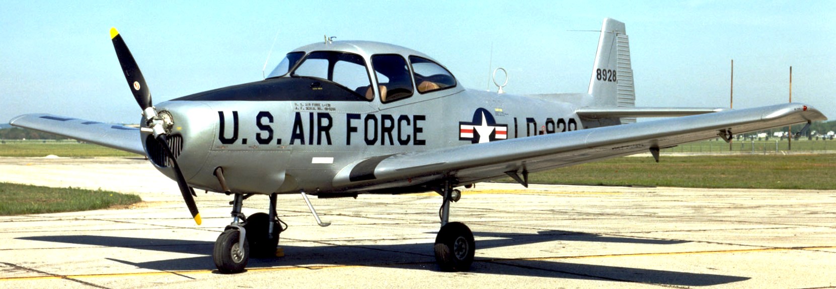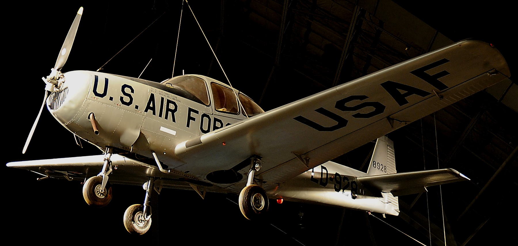 North American/Ryan L-17A Navion (Serial No. 47-1347), painted as 8928.  All L-17s were re-designated U-18s in 1962.  The L-17A on display was flown to the museum on 7 April 1986.  It is marked as a Ryan-built L-17B used by the Air Force ROTC program at Bradley University, Peoria, Illinois, in the spring of 1959.