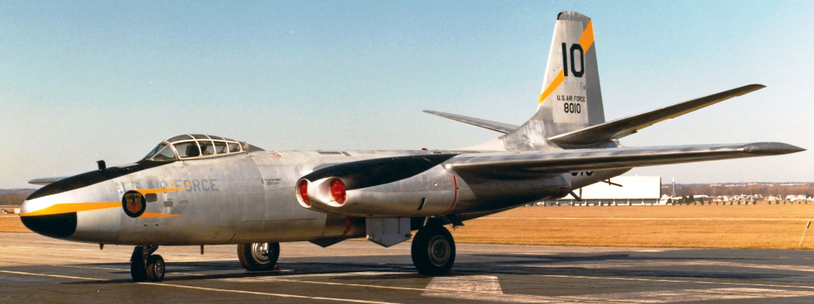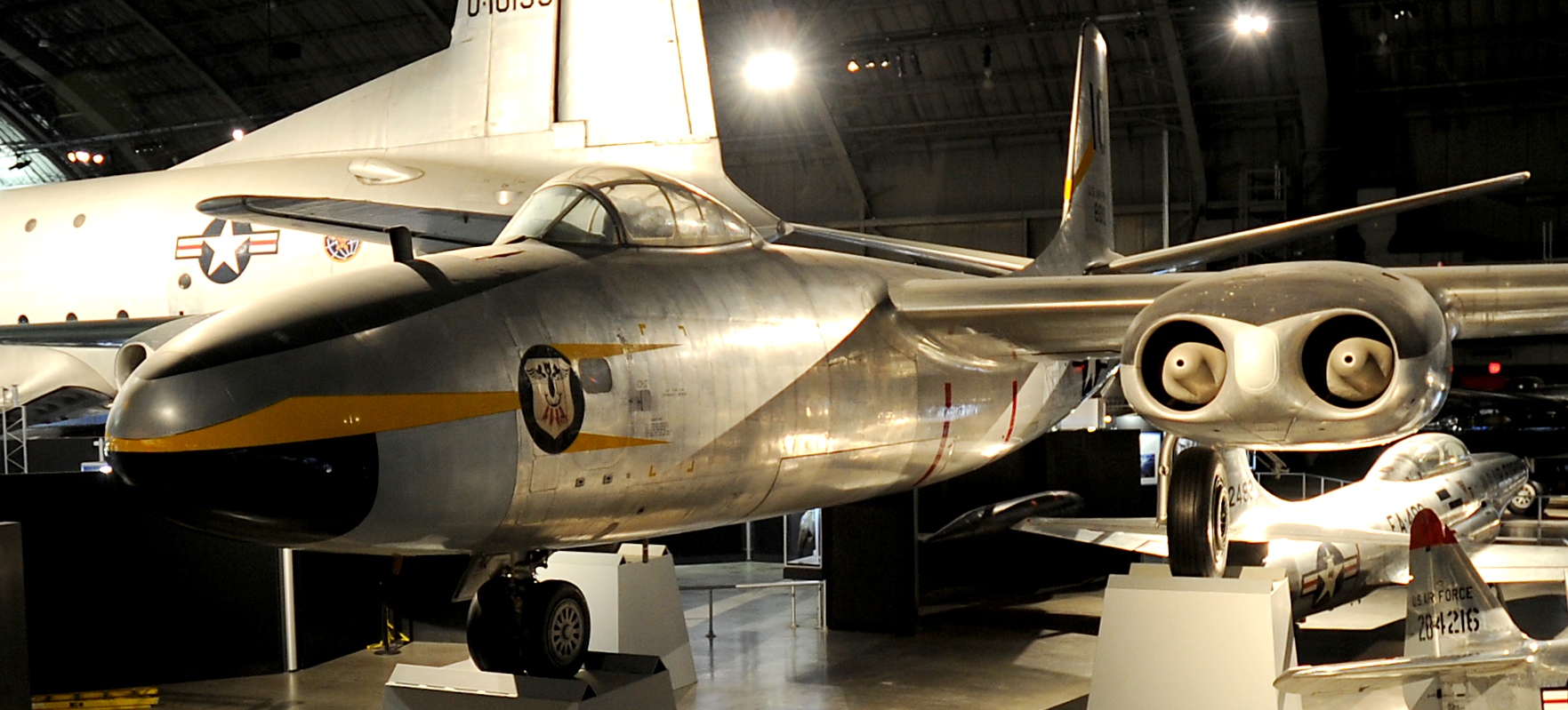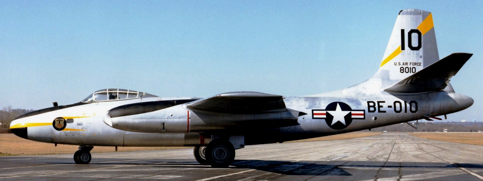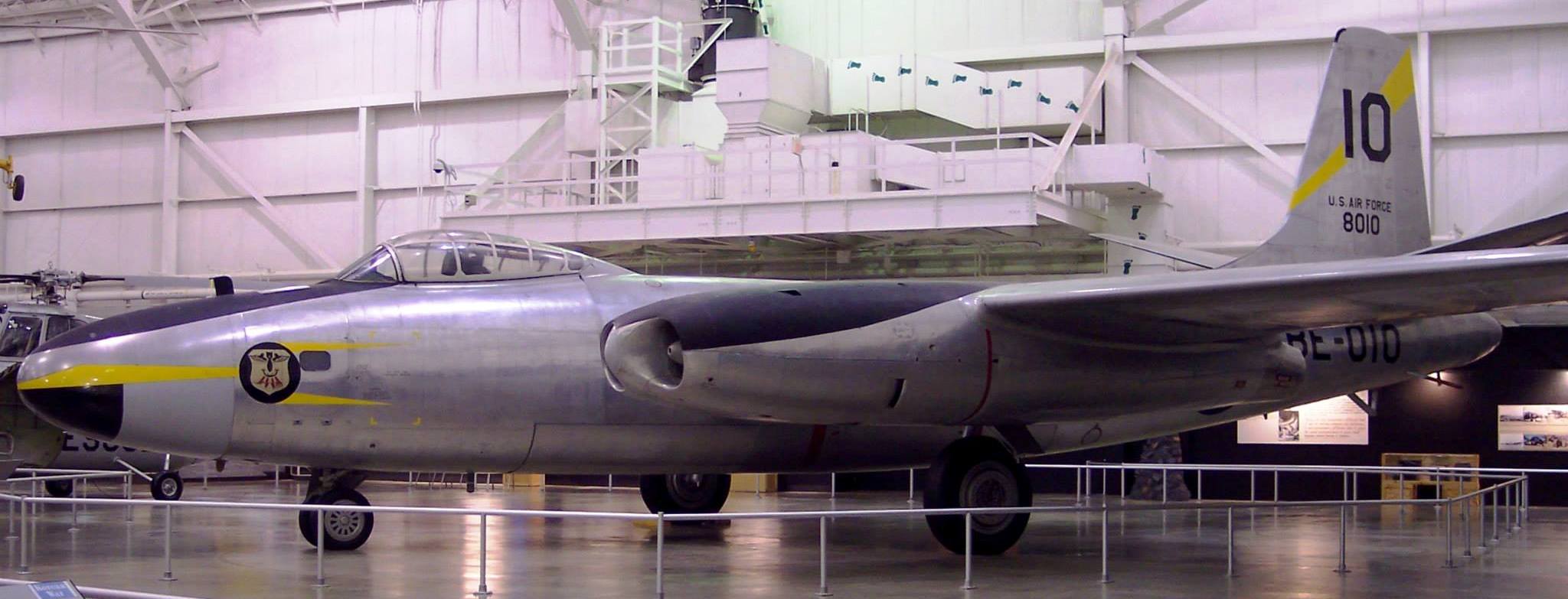 North American B-45C Tornado (Serial No. 48-0010), 10, C/N 153-38486.  The aircraft on display in the NMUSAF was returned to the USAF by Pratt & Whitney Aircraft Division, where it had been on loan for engine testing.  It was flown to the museum in 1971, and is painted in the markings of the 47th Bomb Wing (Light).