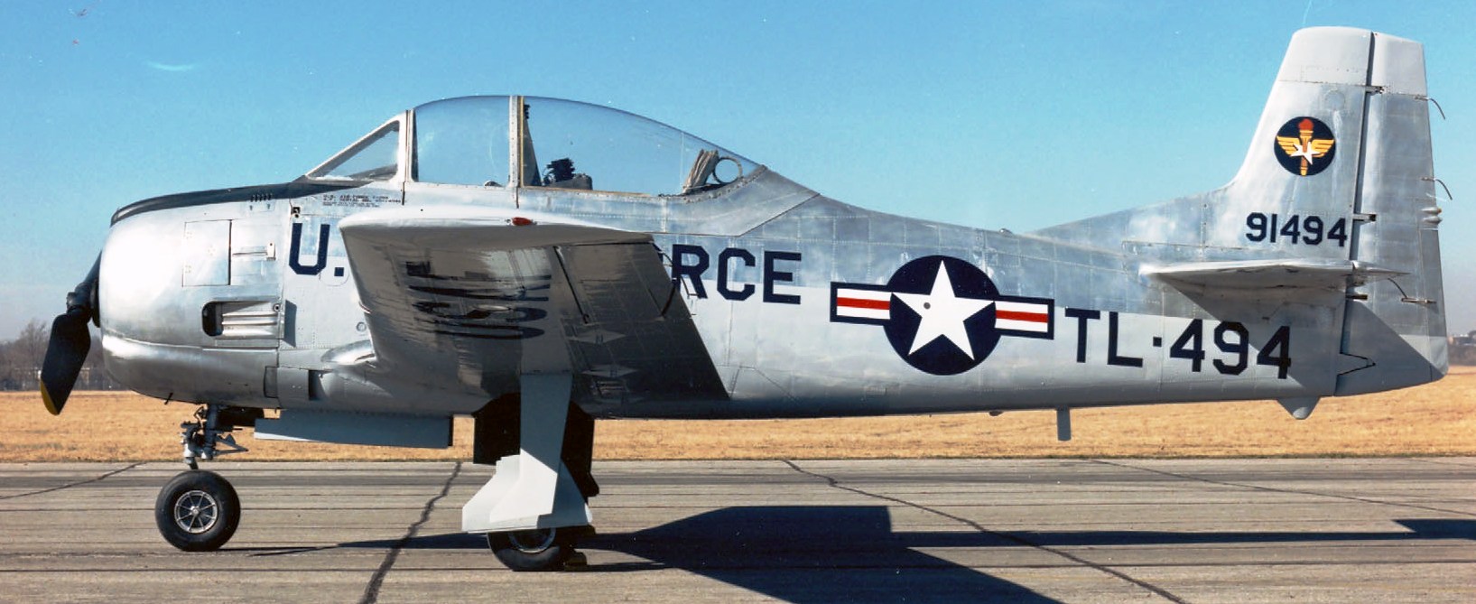 North American T-28A Trojan (Serial No. 49-1494).  The T-28A on display in the NMUSAF is painted as a typical Air Training Command T-28A in the mid-1950s and was transferred to the museum in September 1965.