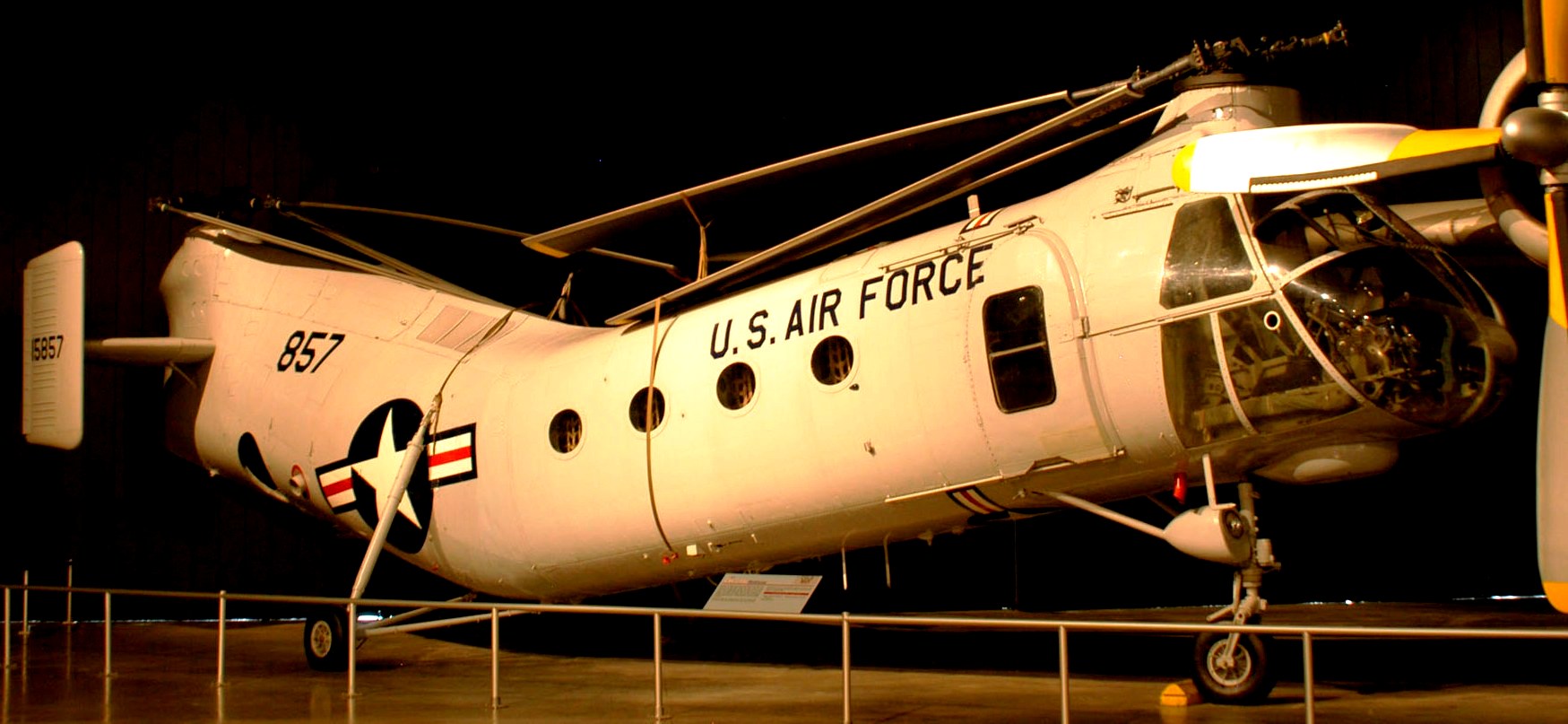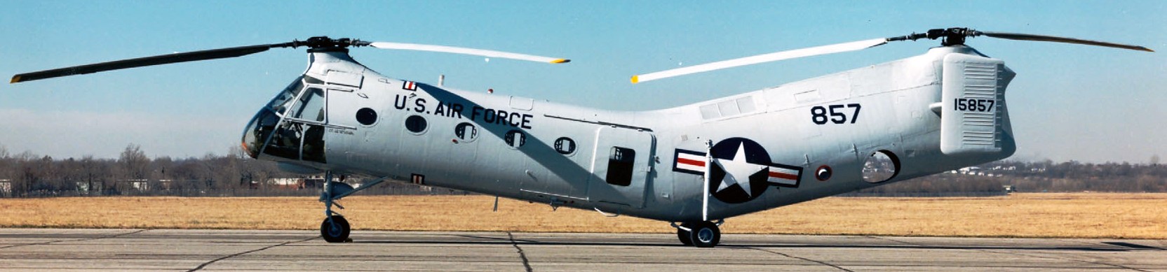 Piasecki H-21B Workhorse (Serial No. 51-15857), C/N B.4. Designed by helicopter pioneer Frank Piasecki, the Vertol H-21 first flew in April 1952. With two main rotors, its long fuselage could hold large numbers of people or heavy cargo loads. Later adaptations allowed the aircraft to perform rescue and assault operations under combat conditions. In addition to the pilot and copilot, the H-21 could carry either 20 fully-equipped troops or 12 litter patients and two medical attendants. Originally called the “flying banana,” the H-21 served with the USAF, the U.S. Army, the French Navy, the Royal Canadian Air Force (RCAF) and the West German Air Force. The NMUSAF obtained the CH-21B on display from Eglin Air Force Base, Florida, in January 1965.