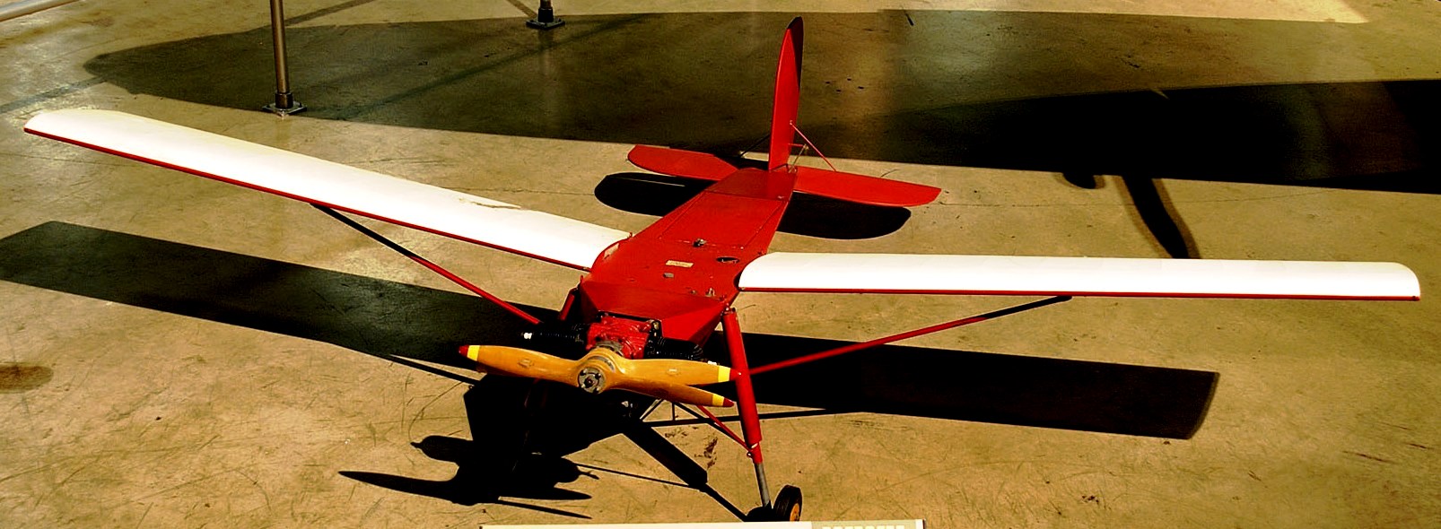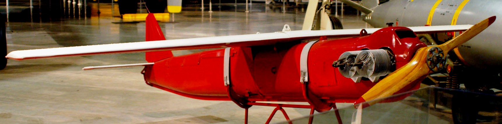 Radioplane OQ-2A. Although Radioplane developed the OQ-2A, other companies shared in production contracts. The target on display in the NMUSAF was the last in the 1943 production run by the Frankfort Sailplane Co. of Joliet, Illinois. It was donated in 1970 by John C. Smith of Massillon, Ohio.