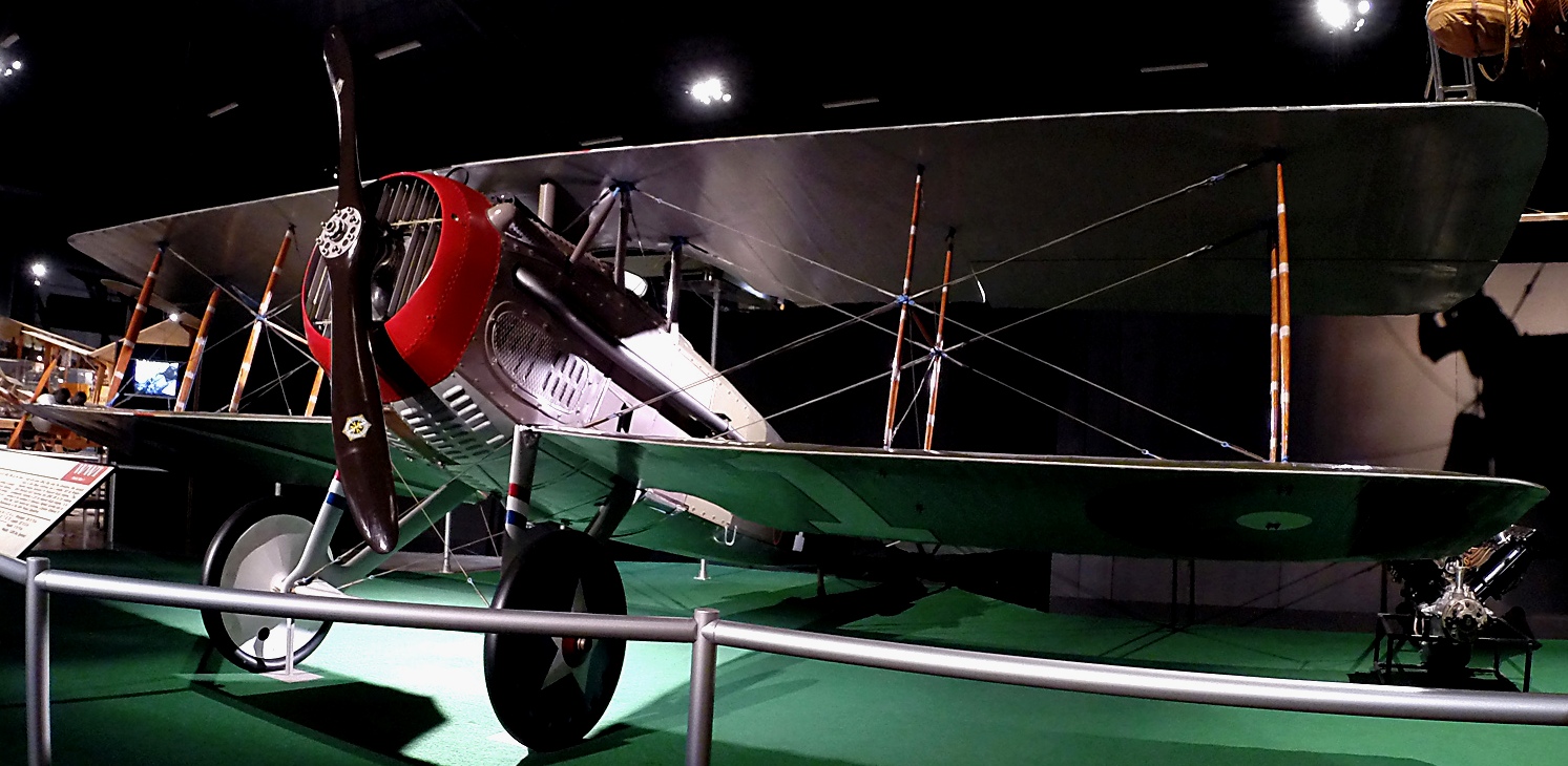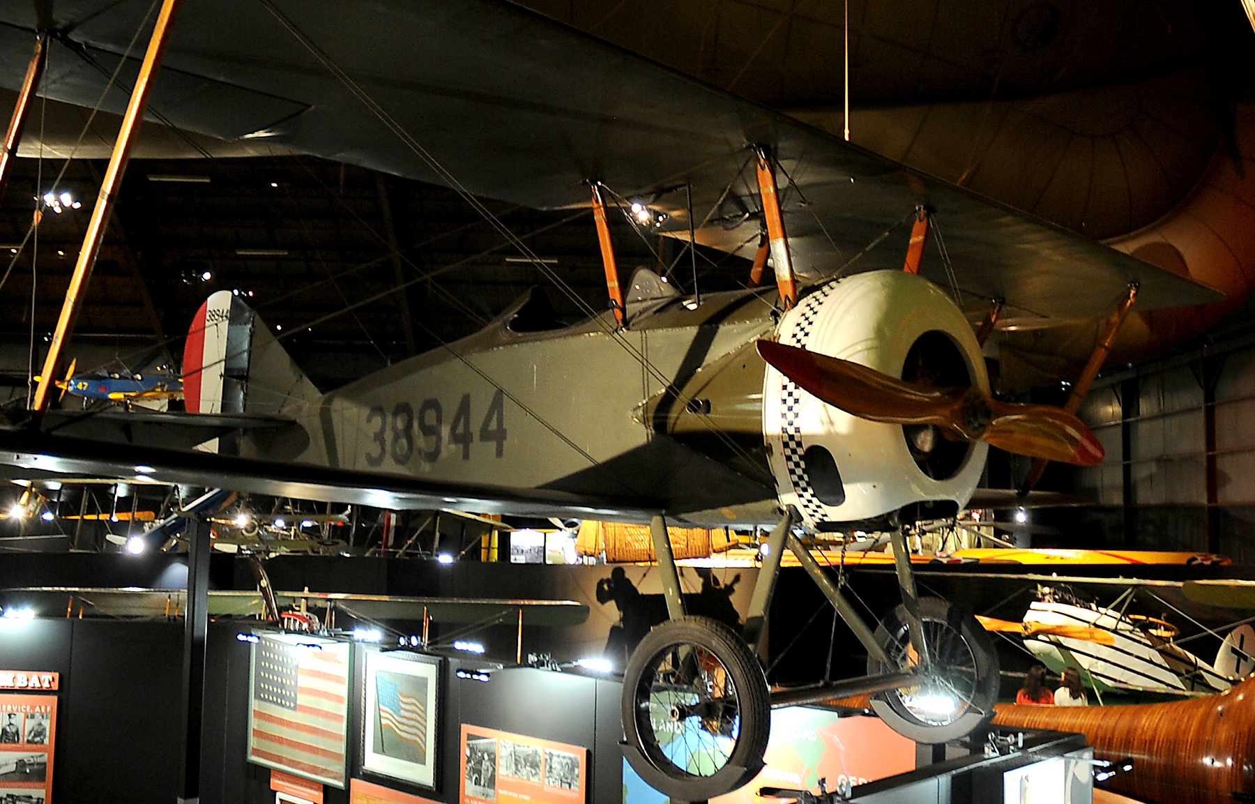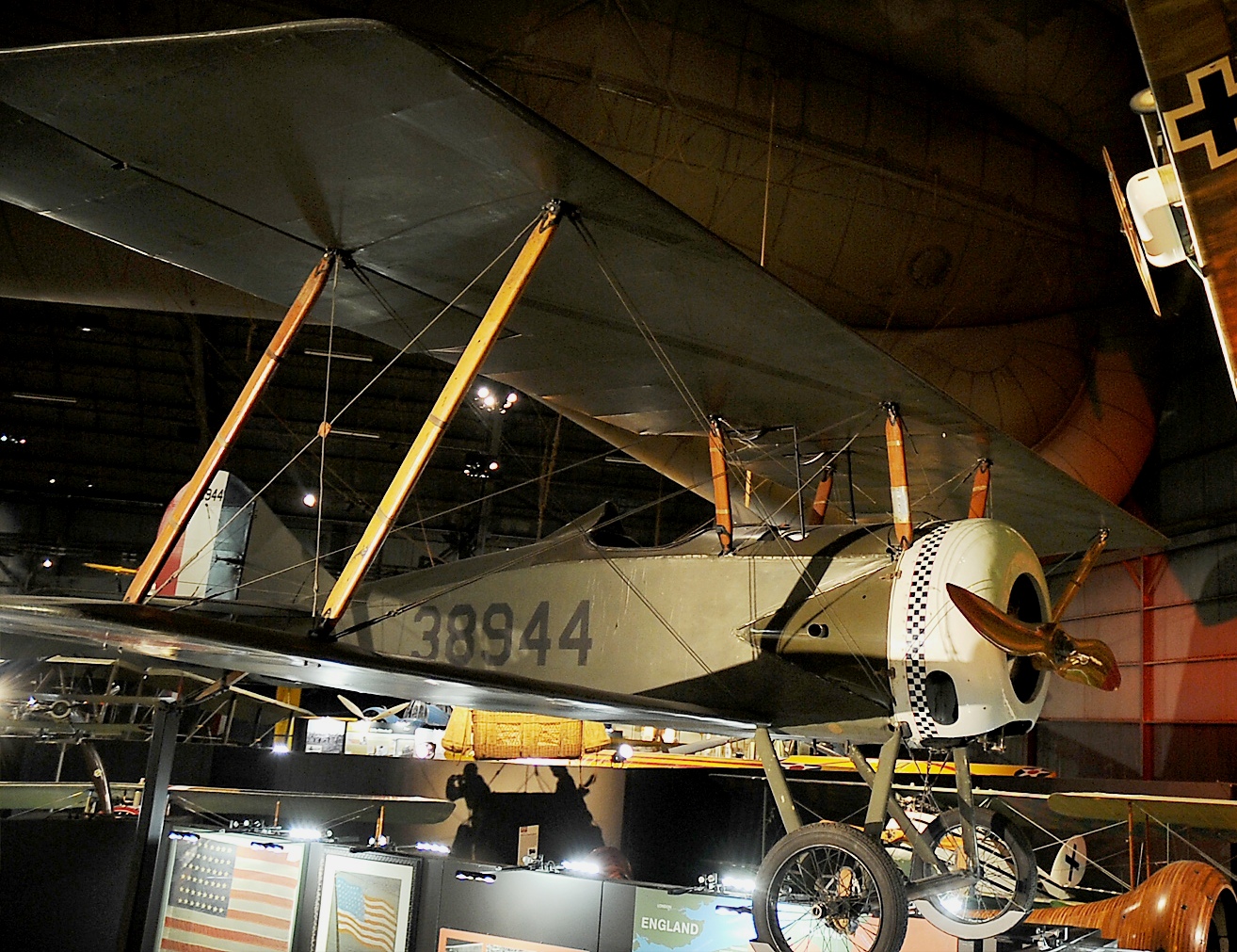 SPADS XIIIC.1 (Serial No. 16594). Built in October 1918 by the Kellner et ses Fils piano works outside of Paris, the museum’s SPAD XIII did not see combat. Shipped to the United States with 434 other SPAD XIIIs after the Armistice, this aircraft went to San Diego, California, and a smaller, 150-hp Wright-Hispano engine replaced its Hispano-Suiza engine. The museum staff restored this SPAD XIII to its original configuration, including a 220-hp Hispano-Suiza engine. It is painted in the markings of America’s highest scoring ace of the First World War with 26 victories, Capt. Edward V. Rickenbacker of the 94th Pursuit Squadron.