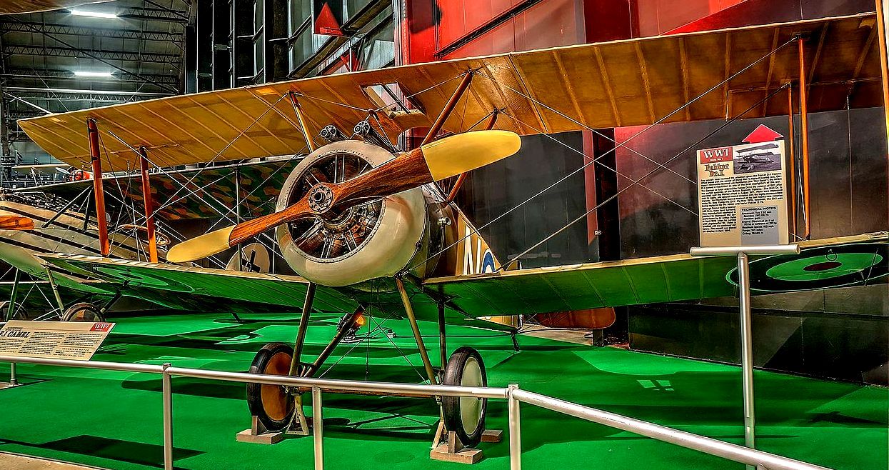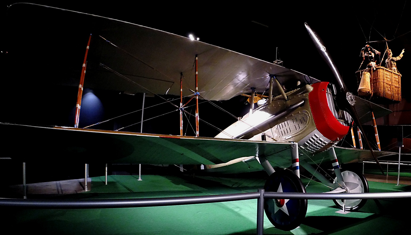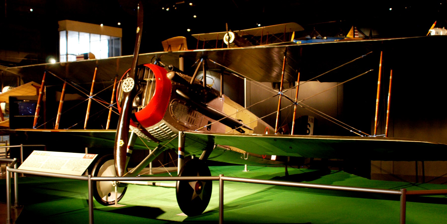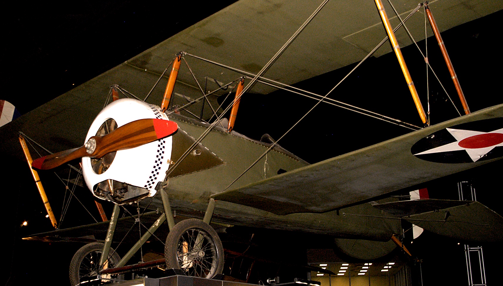 SPADS XIIIC.1 (Serial No. 16594). Built in October 1918 by the Kellner et ses Fils piano works outside of Paris, the museum’s SPAD XIII did not see combat. Shipped to the United States with 434 other SPAD XIIIs after the Armistice, this aircraft went to San Diego, California, and a smaller, 150-hp Wright-Hispano engine replaced its Hispano-Suiza engine. The museum staff restored this SPAD XIII to its original configuration, including a 220-hp Hispano-Suiza engine. It is painted in the markings of America’s highest scoring ace of the First World War with 26 victories, Capt. Edward V. Rickenbacker of the 94th Pursuit Squadron.
