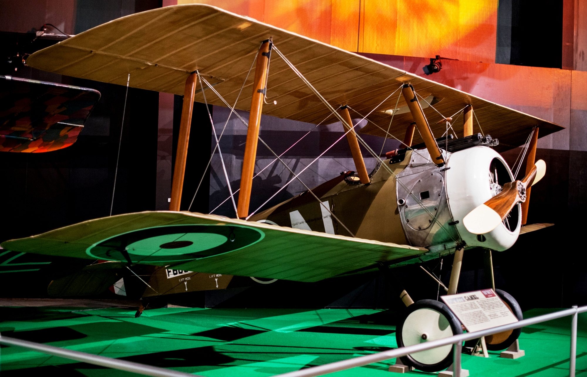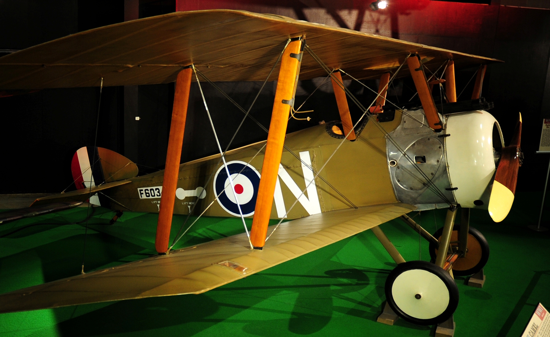 Sopwith F.1 Camel. Although 5,490 Camels were produced, few remain in existence today. USAF personnel built the Camel on exhibit from original First World War factory drawings, completing it in 1974. The aircraft is painted and marked as the Camel flown by Lt. George A. Vaughn Jr. of the 17th Aero Squadron, America’s second-ranking Air Service ace to survive the war.
