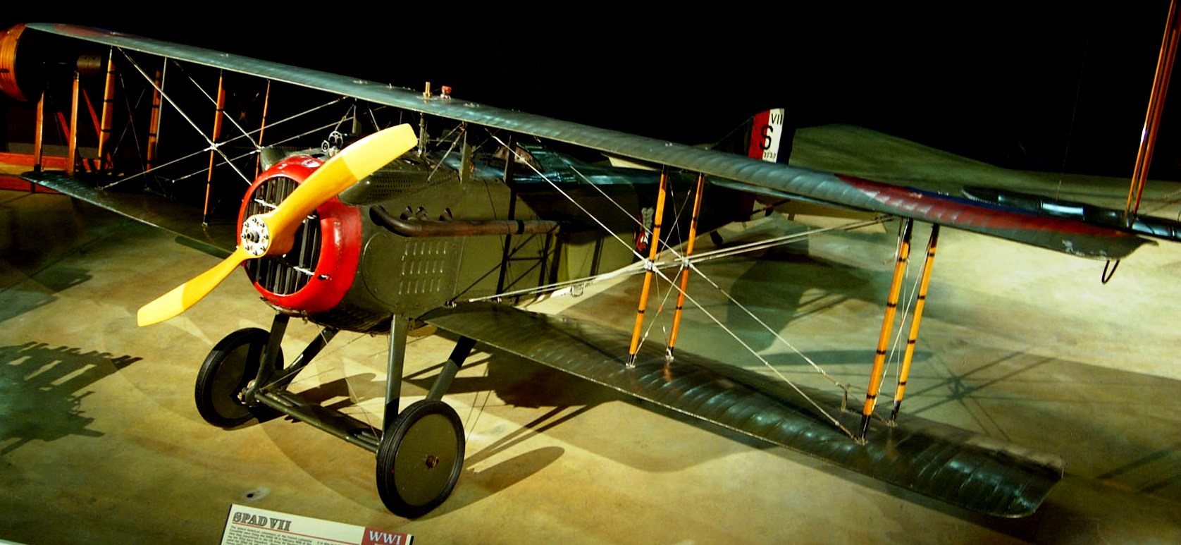 SPAD S.VII C.1 (Serial No. A.S. 94099). The airplane on display was obtained from the Museum of Science and Industry, Chicago, Illinois, and restored by the 1st Fighter Wing, Selfridge Air Force Base, Michigan, 1962-1966.