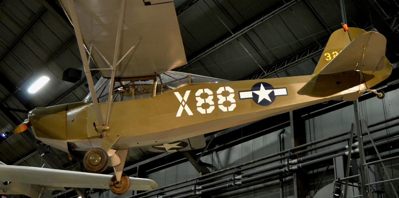 Taylorcraft L-2M Grasshopper (Serial No. 43-26592). The L-2M on display in the NMUSAF, was built in 1944 by the Taylorcraft Airplane Co. in Alliance, Ohio. The U.S. Army Air Forces used it for liaison pilot training at the McFarland Flying Service Contract Pilot School at the Atkinson Municipal Airport in Pittsburg, Kansas. It is painted to represent another L 2M flown at the Atkinson Municipal Airport (Serial No. 43-26588) during the Second World War. In September 2011, Richard Valladao donated the restored aircraft to the museum in memory of U.S. Army Private 1st Class Richard Jerome Conway, who was killed in combat while serving with the 45th Infantry Division in France in 1944.