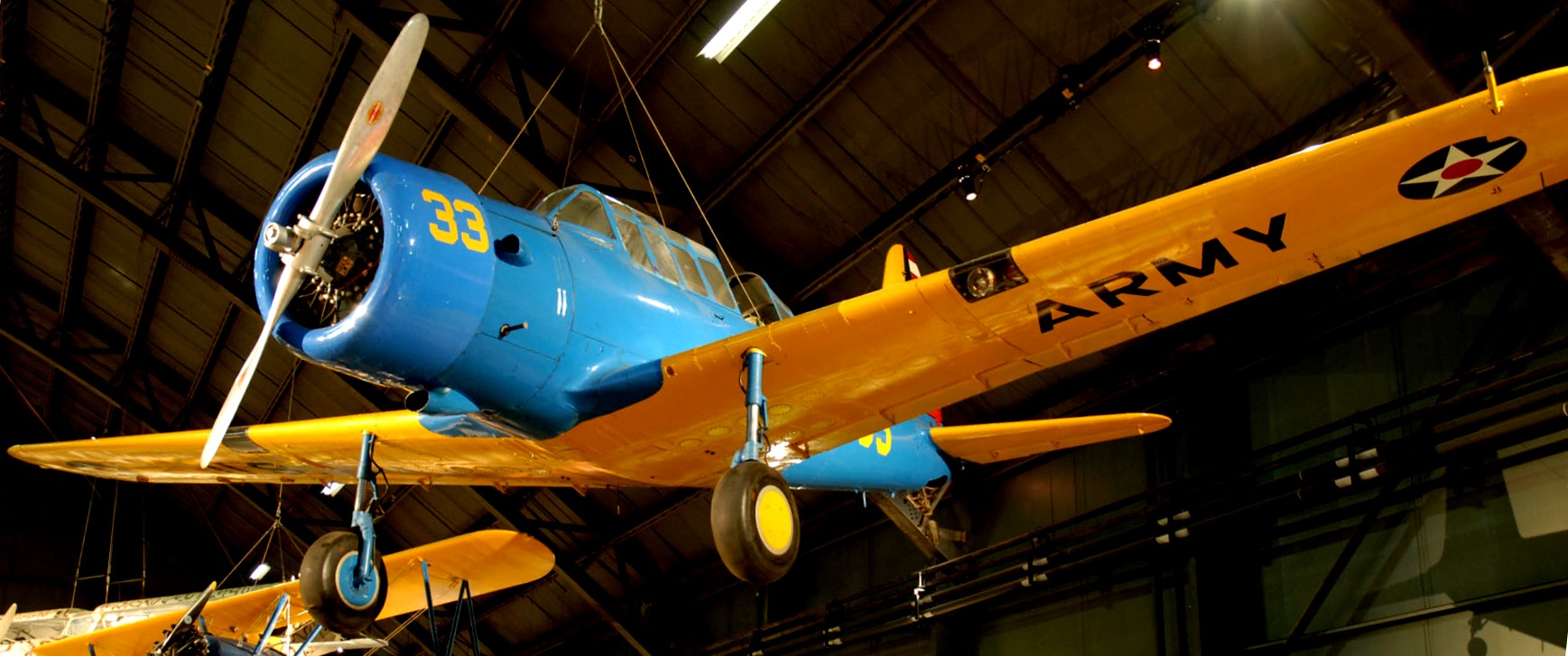Vultee BT-13B Valiant (Serial No. 42-90629). The BT-13B on display in the NMUSAF, one of 1,775 Bs built, was acquired from Raymond Brandly of West Carrollton, Ohio, in 1965.