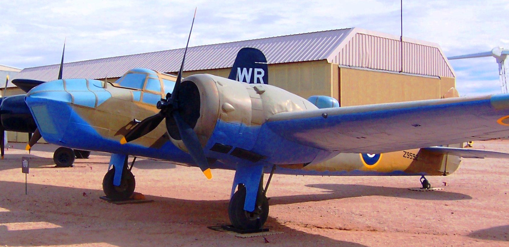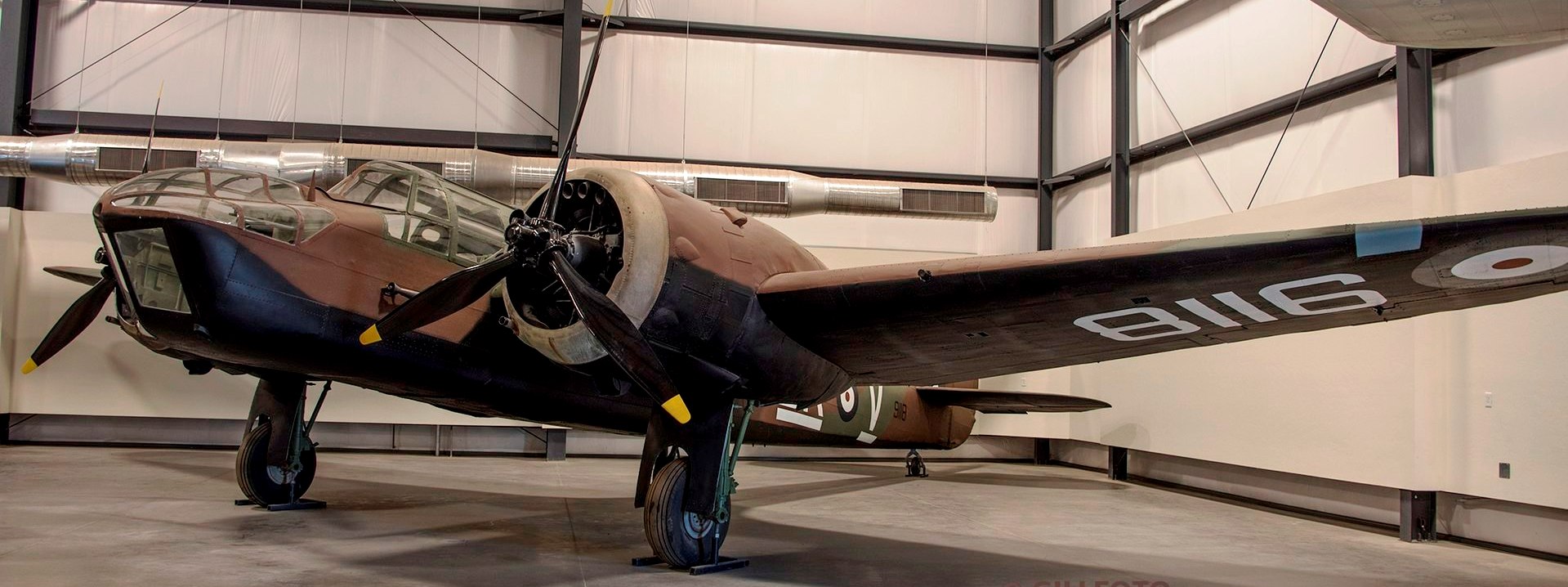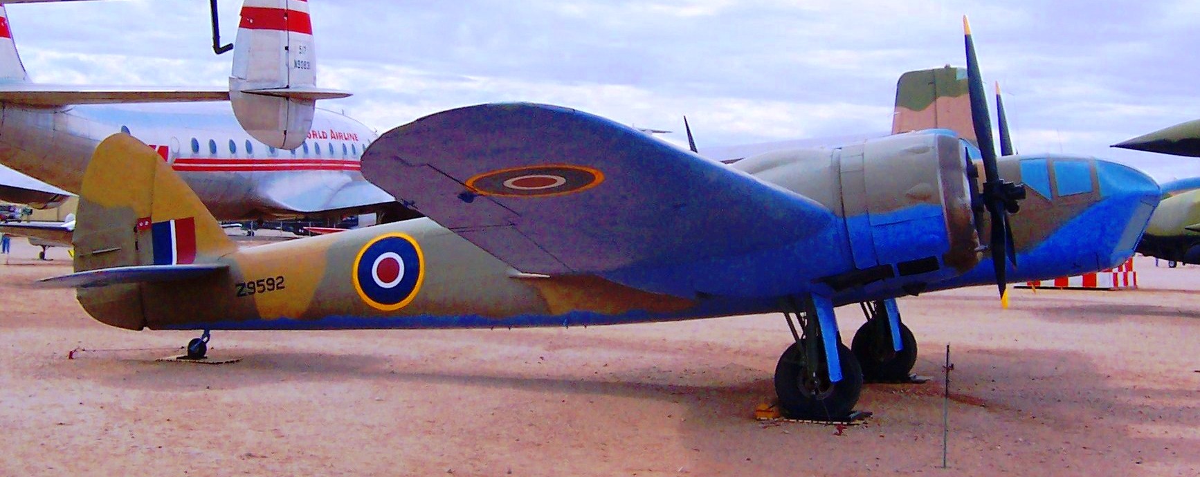Bristol (Fairchild) Bolingbroke Mk. IVT, RCAF (Serial No. 10076), previously painted as (Serial No. Z9592), currently painted as (Serial No. 9118).  This Canadian-built aircraft had an RAF North Africa paint scheme.  It has been repainted in the colours of BK-V, an aircraft that flew with RCAF No. 115 Squadron, based at Patricia Bay, British Columbia during the war.