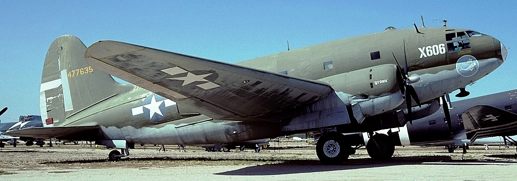 Curtiss-Wright C-46D Commando (Serial No. 44-77635), in the markings of the 2nd Combat Cargo Group, 5th Combat Cargo Squadron while based at Townsville, Australia in 1944.