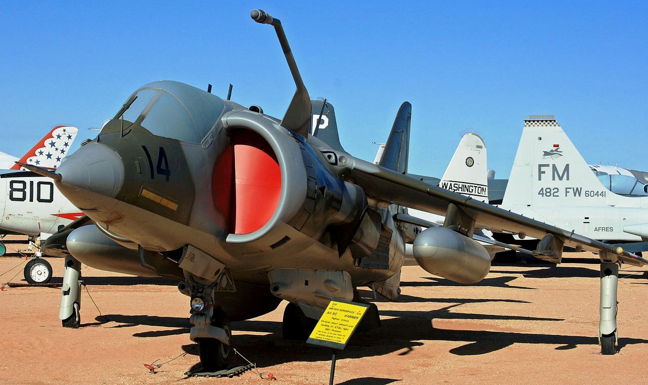 British Aerospace BAe FA.2 Sea Harrier (Serial No. ZH810).  This Harrier was one of the last to be produced at Dunsfold in Surrey, UK and entered Royal Navy Fleet Air Arm in 1999.  It was based in Somerset with No. 899 Squadron and flew until the Sea Harrier fleet was withdrawn in 2006.  It was transferred to Piman in 2018.