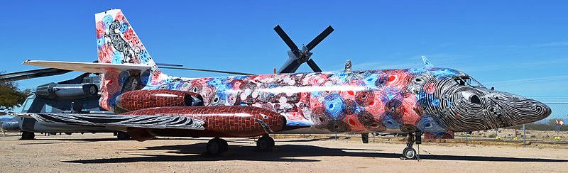 Lockheed VC-140B Jetstar (Serial No. 62-4197), c/n 5041.  ‘The Boneyard Project: Return Trip’ was created by Eric Firestone and used retired military aircraft from Tucson scrapyards as canvasses for contemporary artists. This ex USAF Lockheed Jetstar became ‘Spy Tiger‘ by Andrew Schoultz.