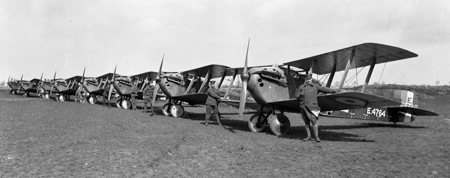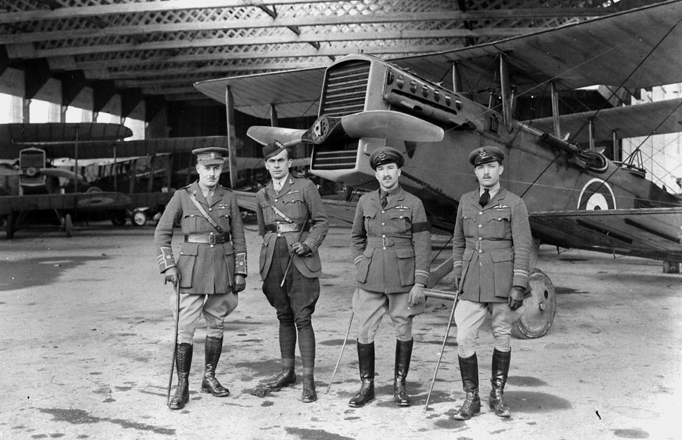 de Havilland DH.9a, No. 2 Squadron (No. 123 Squadron (Canadian), RAF), with four pilots, Upper Heyford, Oxfordshire, England, 1919.