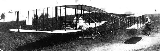Canadian Aerodrome Baddeck No. 1 with Frederick W. “Casey” Baldwin and John McCurdy, preparing for military trials at Camp Petawawa, Ontario. Its first demonstration flight was made on 11 Aug 1909.