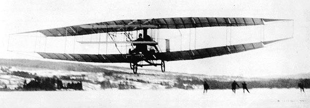 23 Feb 1909. J.A.D. McCurdy made the first successful aircraft flight in Canada, piloting the Silver Dart for a distance of 3/4 of a kilometre over the ice-covered surface of Baddeck Bay in Nova Scotia. The next day he flew for more than 7 km in a complete circle back to his starting point. Both flights were recognized by the Royal Aero Club of the United Kingdom as the first successful powered, controlled, heavier-than-air flights by a British subject anywhere in the British Empire.