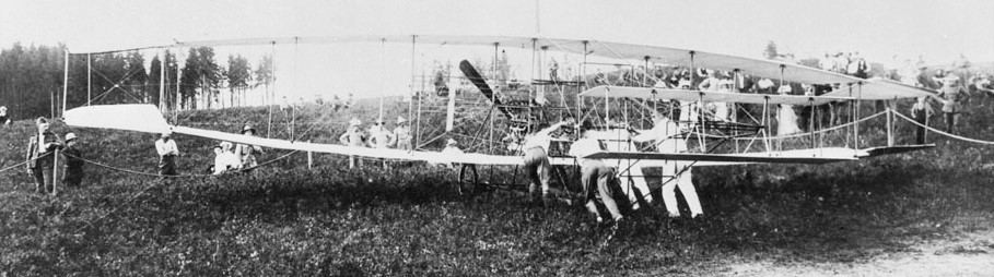 17 Dec 1903. After building and testing three full-sized gliders, Wilbur and Orville Wrights’ successful powered heavier than air flight took place at Kitty Hawk, North Carolina. Orville flew a 12-second flight, traveling 36m (120 ft). The best flight of the day, with Wilbur at the controls, covered 255.6 m (852 ft) in 59 seconds. They were not the only group working to place men in the air.