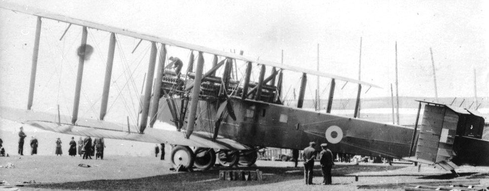 10 Jun 1919. Handley Page V-1500, preparing for an Atlantic crossing, Harbour Grace, Newfoundland.