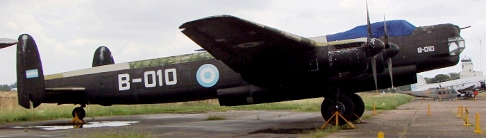 Avro Lincoln Mk. II, ex-RAF (Serial No. RE351), Argentine Air Force (Serial No. B-004).  Acquired in Dec 1947, this aircraft flew with the Regimiento 1 de Bombardeo (1st Boming Regiment) until it was withdrawn in Aug 1967 having logged 2,200 flight hours.  It is painted as (Serial No. B-010), Museo Nacional de Aeronáutica (MNA) de Argentina, Morón – National Museum of Aeronautics, Buenos Aires, Argentina.