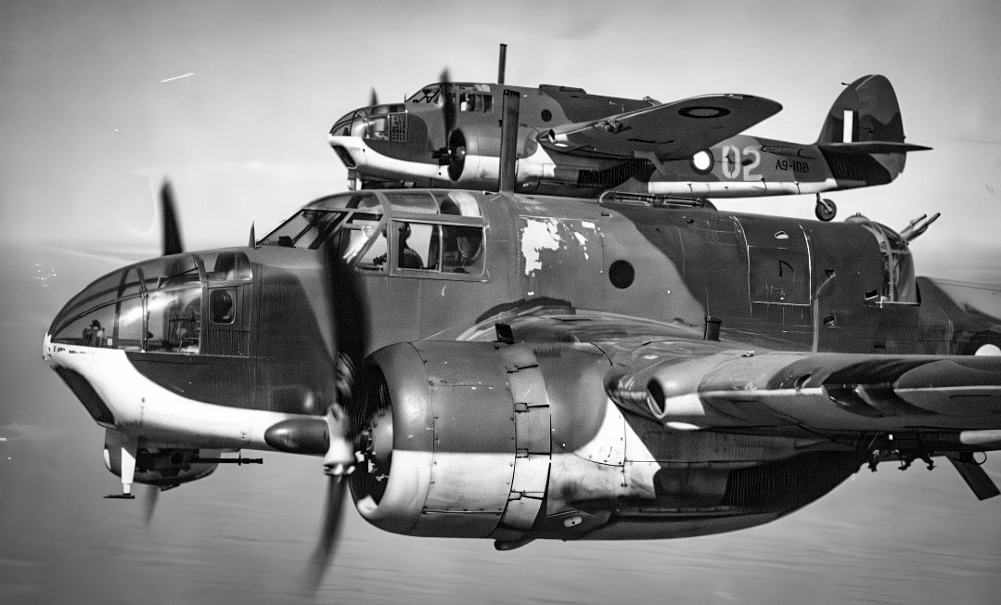 Bristol Beaufort Type 152, used as torpedo bombers, conventional bombers and mine-layers until 1942.  Beauforts saw their most extensive use with the RAAF in the Pacific theatre, where they were used until the very end of the war. With the exception of six examples delivered from the United Kingdom, Australian Beauforts were locally produced under licence.  Although designed as a torpedo-bomber, the Beaufort more often flew as a level-bomber.  The Beaufort also flew more hours in training than on operational missions, and more were lost through accidents and mechanical failures than were lost to enemy fire.  However, the Beaufort did spawn a long-range heavy fighter variant called the Beaufighter, which proved to be very successful and many Beaufort units eventually converted to the Beaufighter.  (Wikipedia)