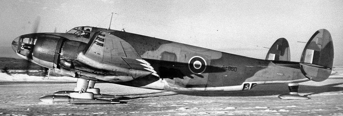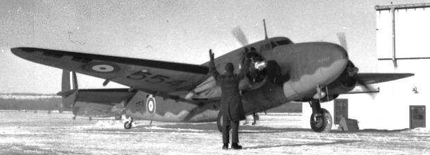 Airspeed A.S. 10 Oxford Mk. II, RCAF (Serial No. -962) mounted on skis.